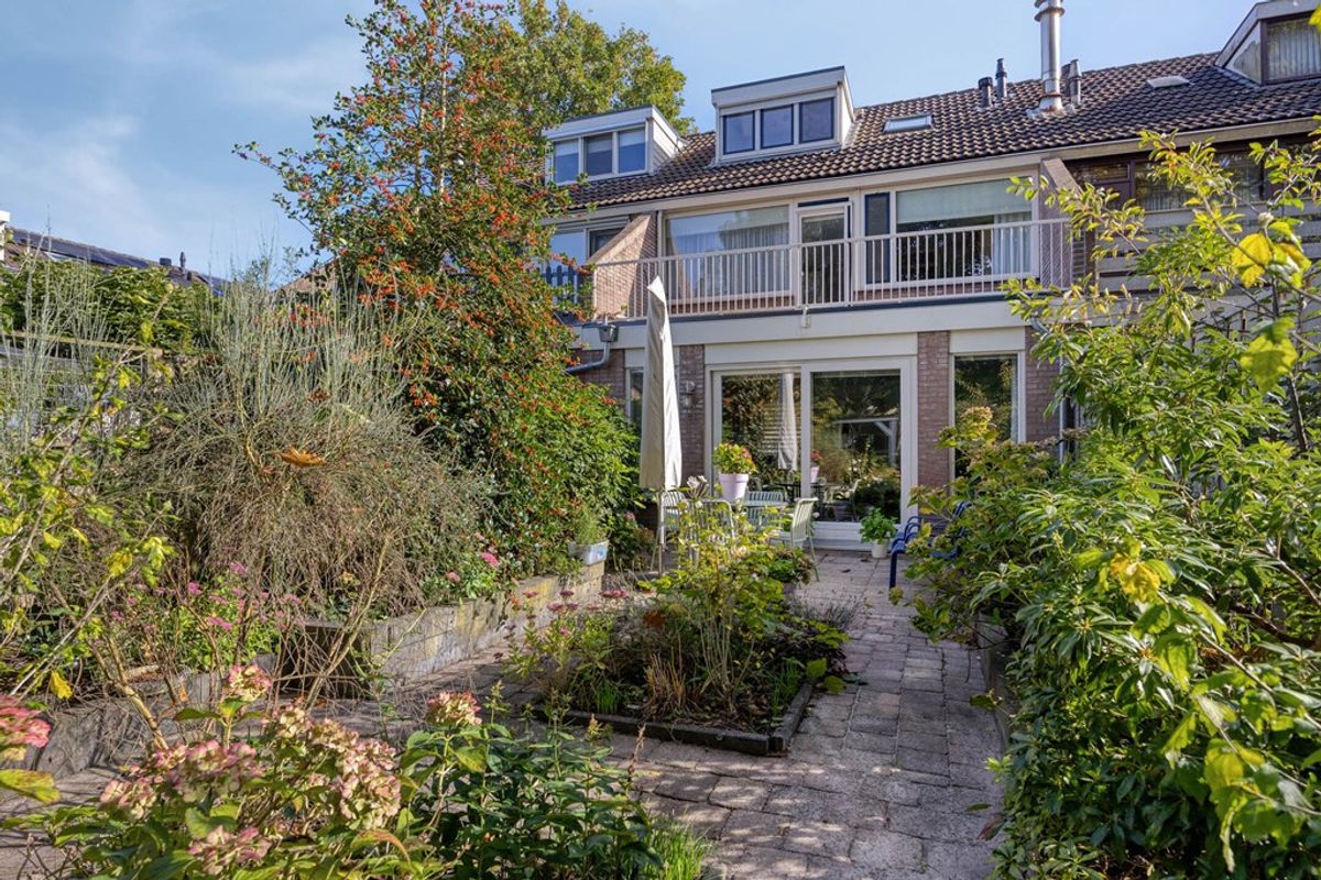 Deze sfeervolle, op het zuidwesten gelegen achtertuin biedt volop zon en privacy in een rustige, groene woonomgeving. De tuin is fraai aangelegd met diverse bloeiende planten en struiken, in het midden van de tuin loopt een keurig bestrate tuinpad naar een gezellige overkapping met zitje, perfect voor lange zomeravonden.