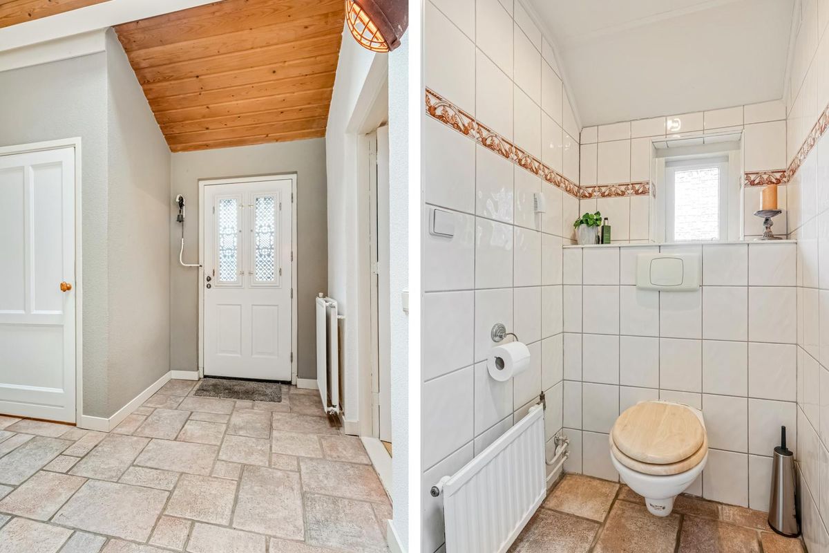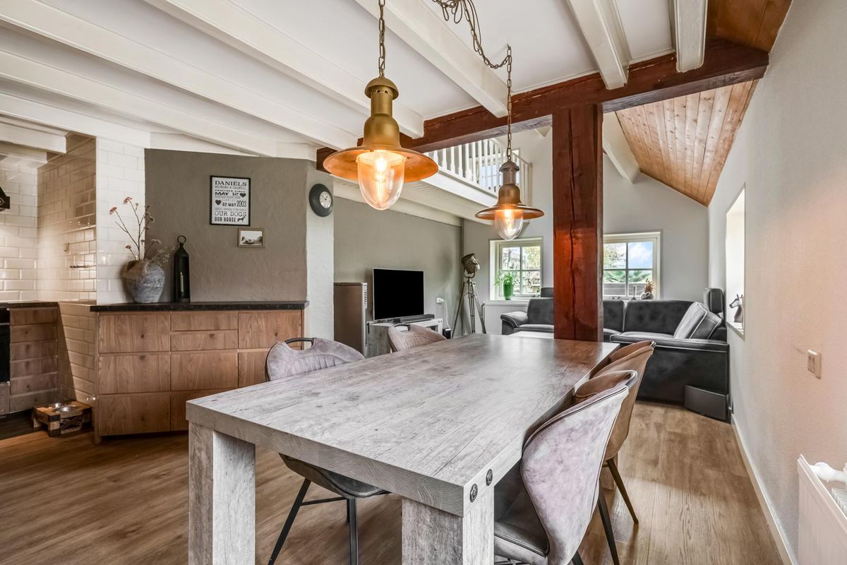 De woning zelf is een prachtige mix van landelijke charme en eigentijds wooncomfort. De karakteristieke voordeur verwelkomt je in een ruime hal met tegelvloer, hoge plafonds en een indrukwekkende vide die direct het gevoel van ruimte benadrukt. De indeling is praktisch én sfeervol. Op de begane grond vind je onder andere een (slaap)kamer met stalraampjes, een badkamer, en een separaat toilet – ideaal voor gelijkvloers wonen of gasten.