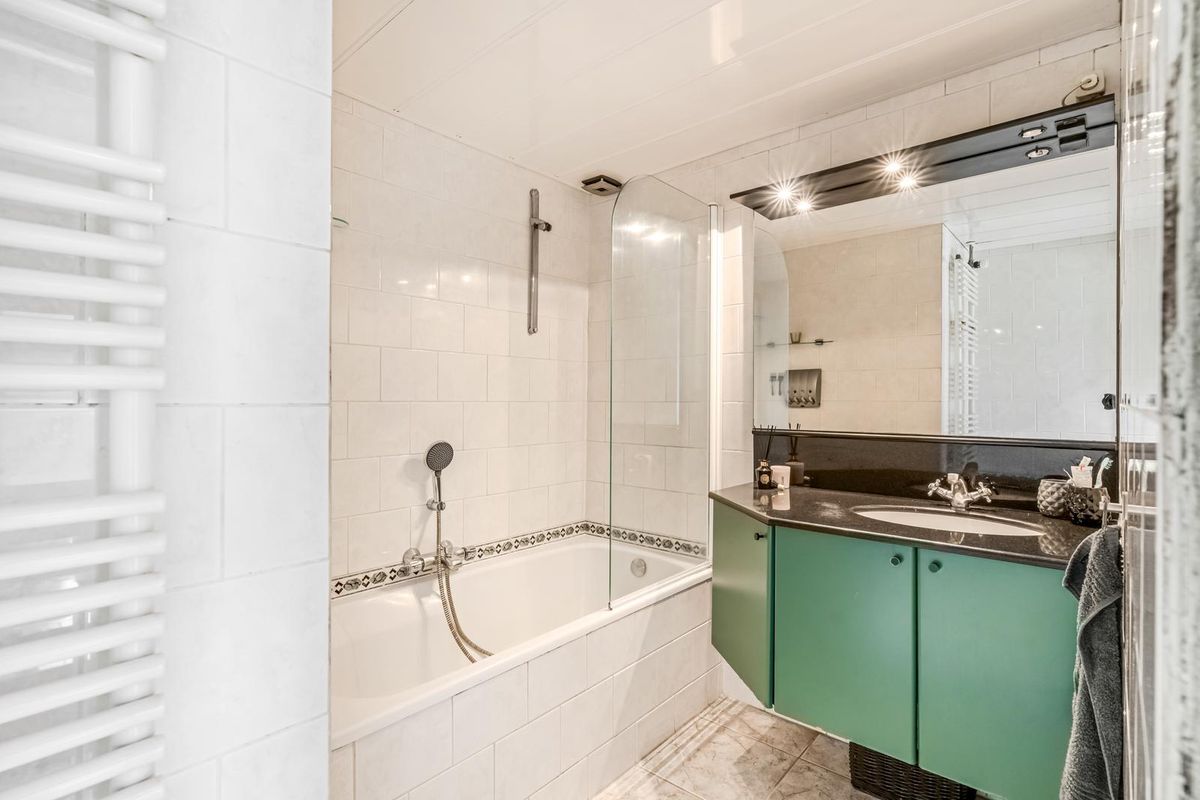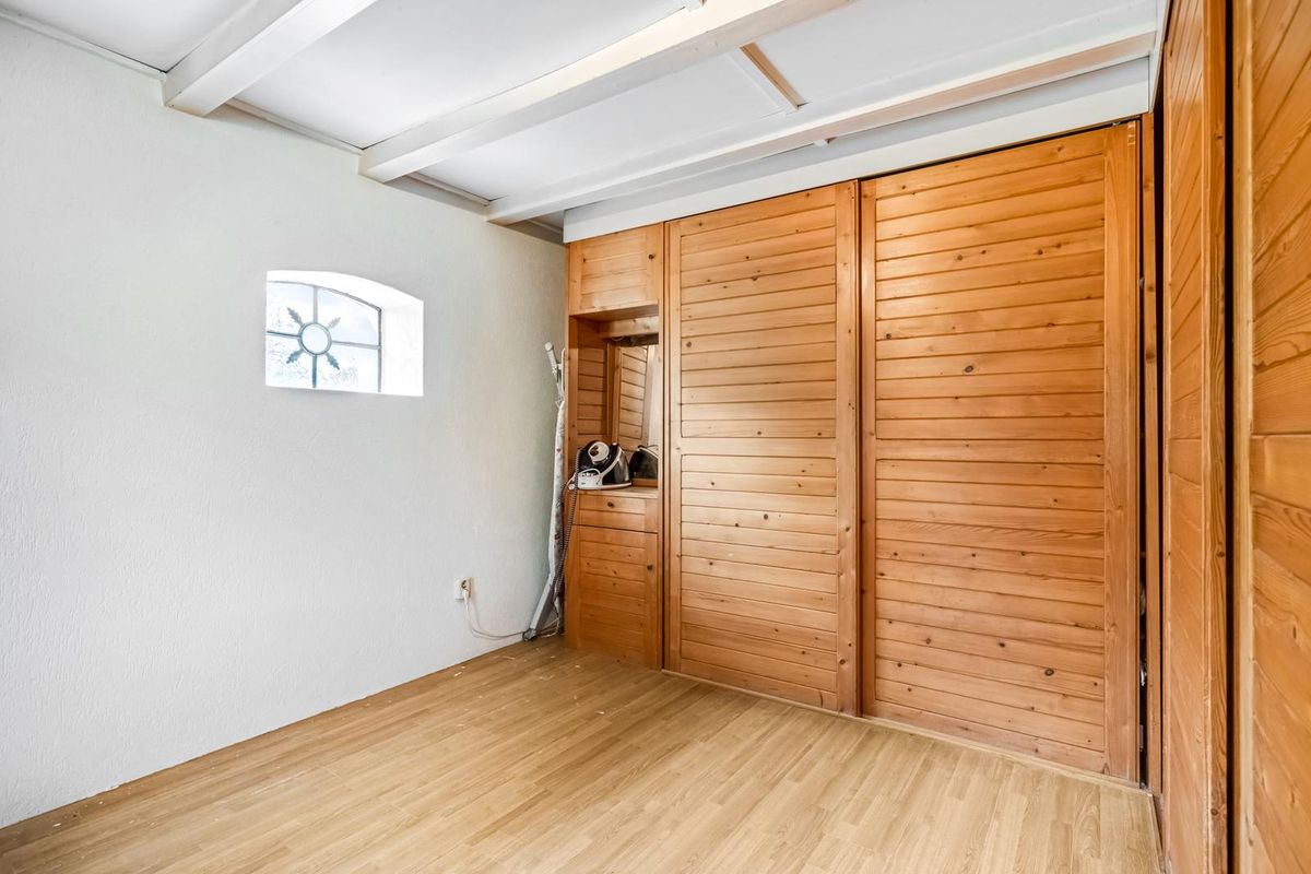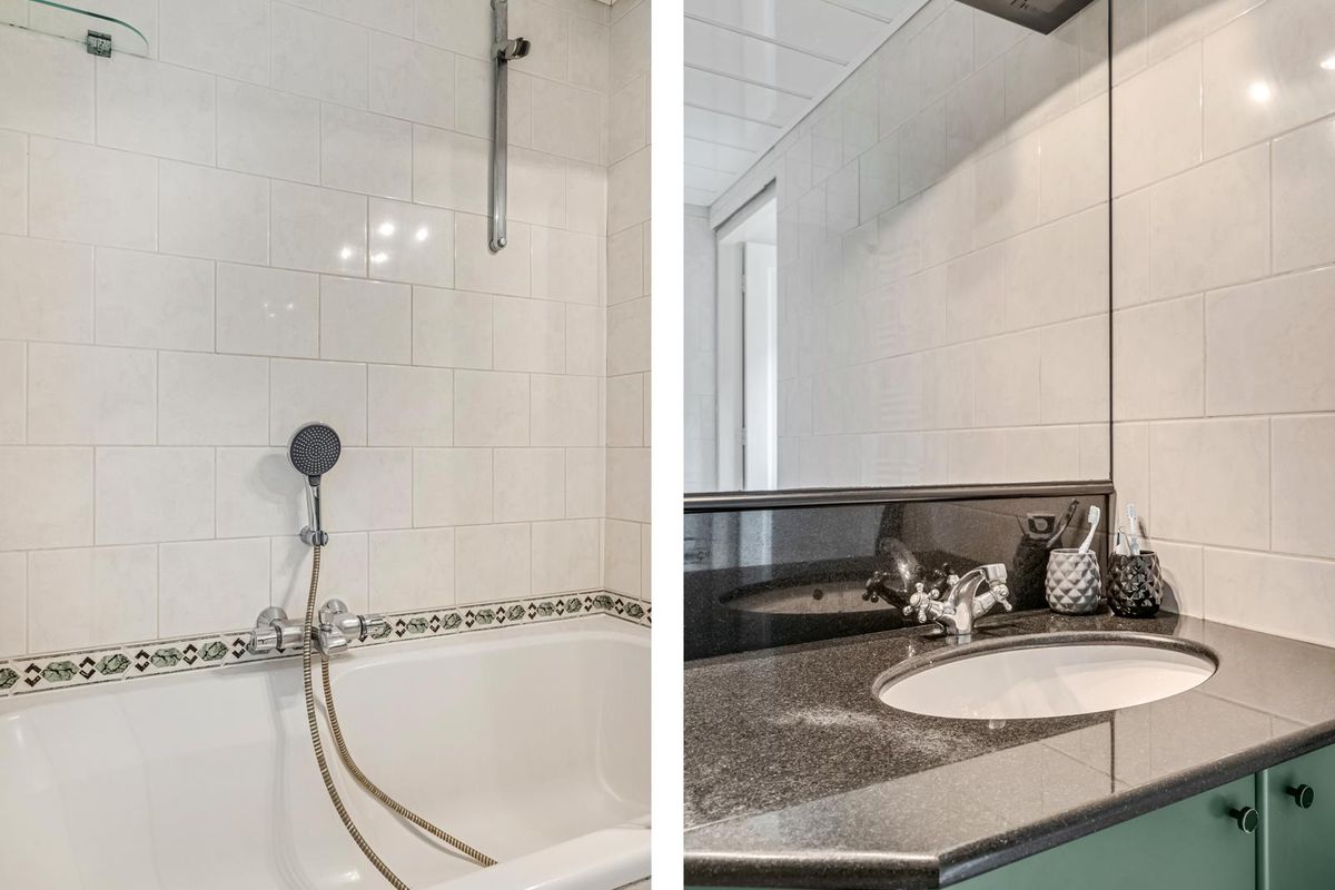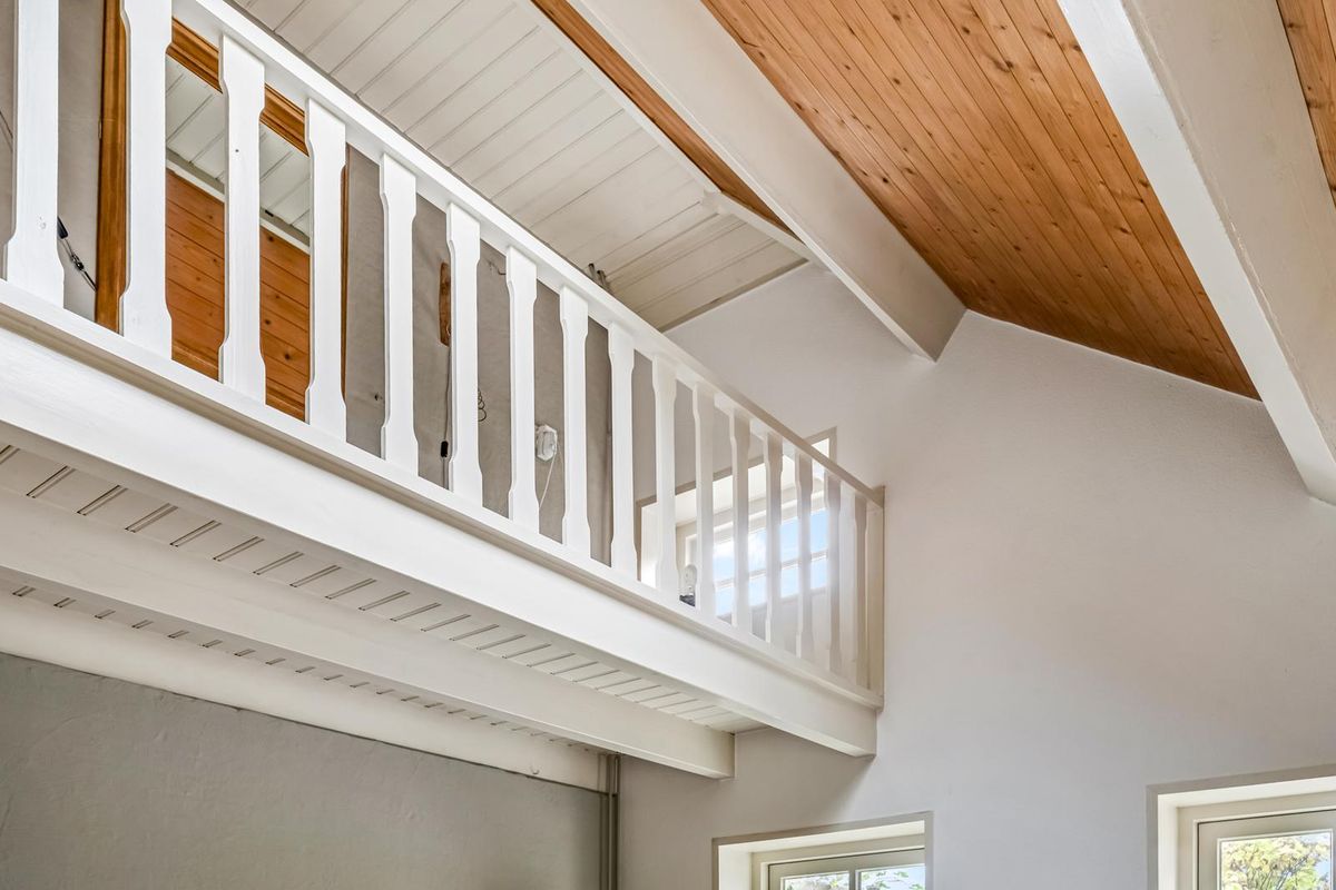 Via de open trap en vide bereik je de eerste verdieping. De overloop is sfeervol en ruim, voorzien van houten vloeren en vloerbedekking. De master bedroom met dakkapel heeft een prettige lichtinval en is uitgerust met een Mitsubishi airco, ideaal voor warme zomernachten. De tweede slaapkamer, eveneens met dakkapel, is ruim en beschikt ook over een eigen airco. Vanaf de overloop kijk je uit over de vide naar de woonkamer beneden – een bijzonder en speels detail dat deze woning karakter geeft. Daarnaast is er een aparte wasruimte met de CV-installatie (Intergas, 2020), netjes weggewerkt en praktisch ingericht.
