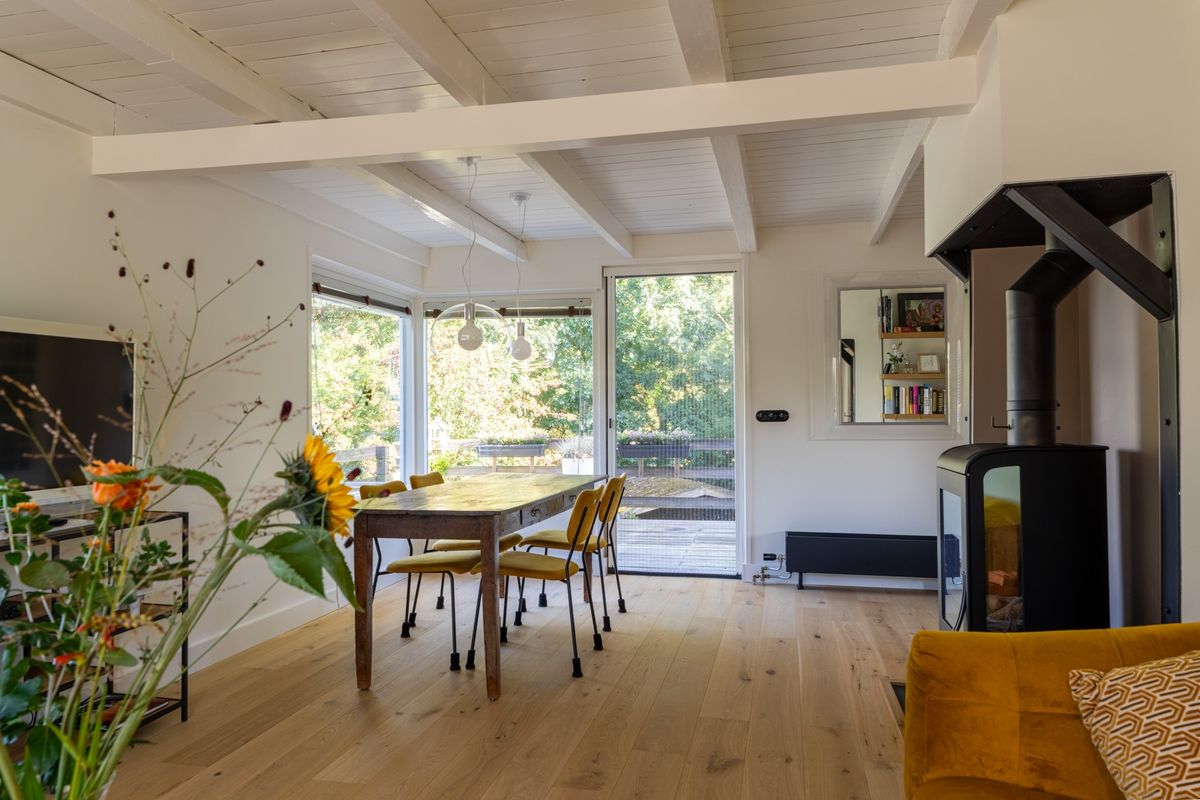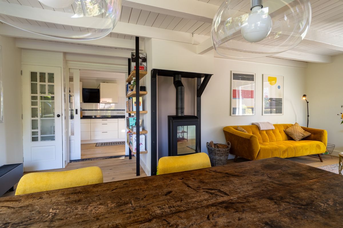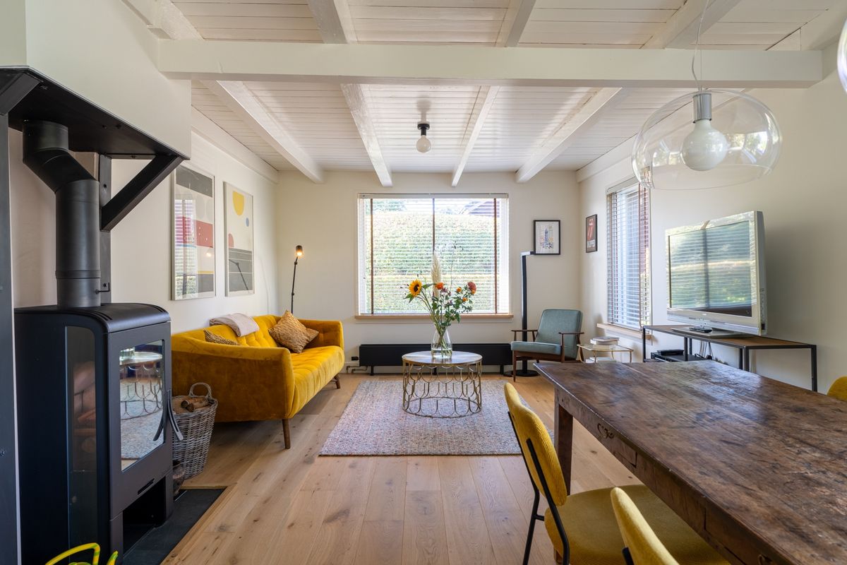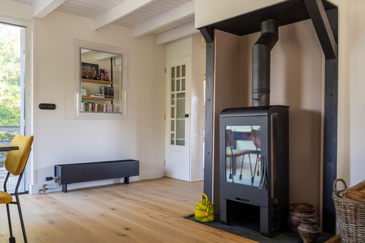 Wonen op dijkniveau betekent lekker licht, een mooi uitzicht en volop sfeer. De woonkamer is knus en gezellig, met een houtkachel als warme eyecatcher. Via de loopdeur stap je zo het terras op — perfect voor een kop koffie in de ochtendzon. Via een trap staat het terras in directe verbinding met de tuin. In het souterrain vind je nog een handige tussenruimte én een bijkeuken met cv-opstelling, ventilatie unit en aansluitingen voor je wasmachine en droger.