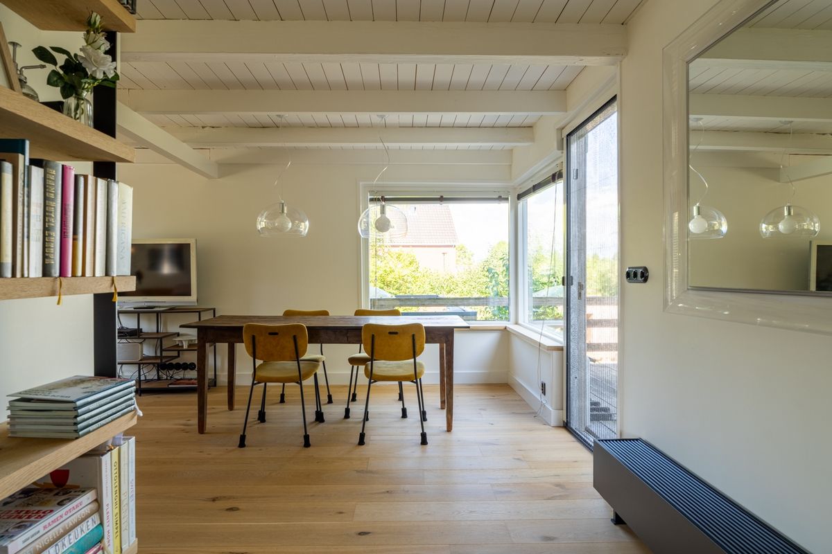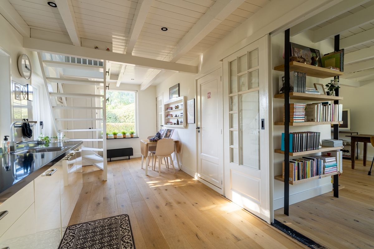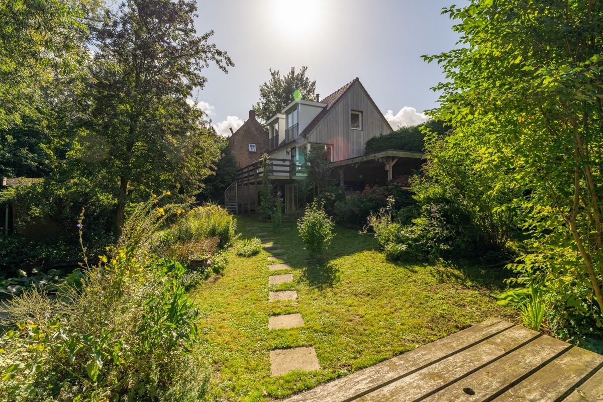 Wat een heerlijk huis is dit! Zodra je binnenstapt voel je het: sfeer, ruimte én mogelijkheden. Of je nu droomt van een thuiswerkplek, een atelier of gewoon een gezellige plek om te wonen — hier kan het allemaal. Beneden in het souterrain vind je een slaapkamer die zo uit een luxe hotel lijkt te komen. Denk: een vrijstaand ligbad, vaste garderobekast en openslaande deuren naar de tuin. Op dijkniveau ligt de gezellige woonkeuken met aansluitend de woonkamer, compleet met knusse houtkachel en toegang tot een royaal terras. De bovenverdieping is nu een grote, lichte werkruimte, maar kan ook makkelijk omgetoverd worden tot één of meerdere slaapkamers. En dan die tuin, het bijgebouw, de overkappingen... Echt een huis dat je blijft verrassen.