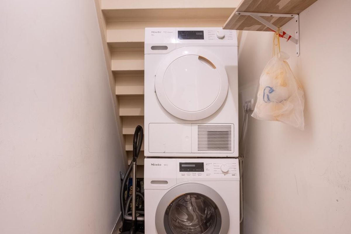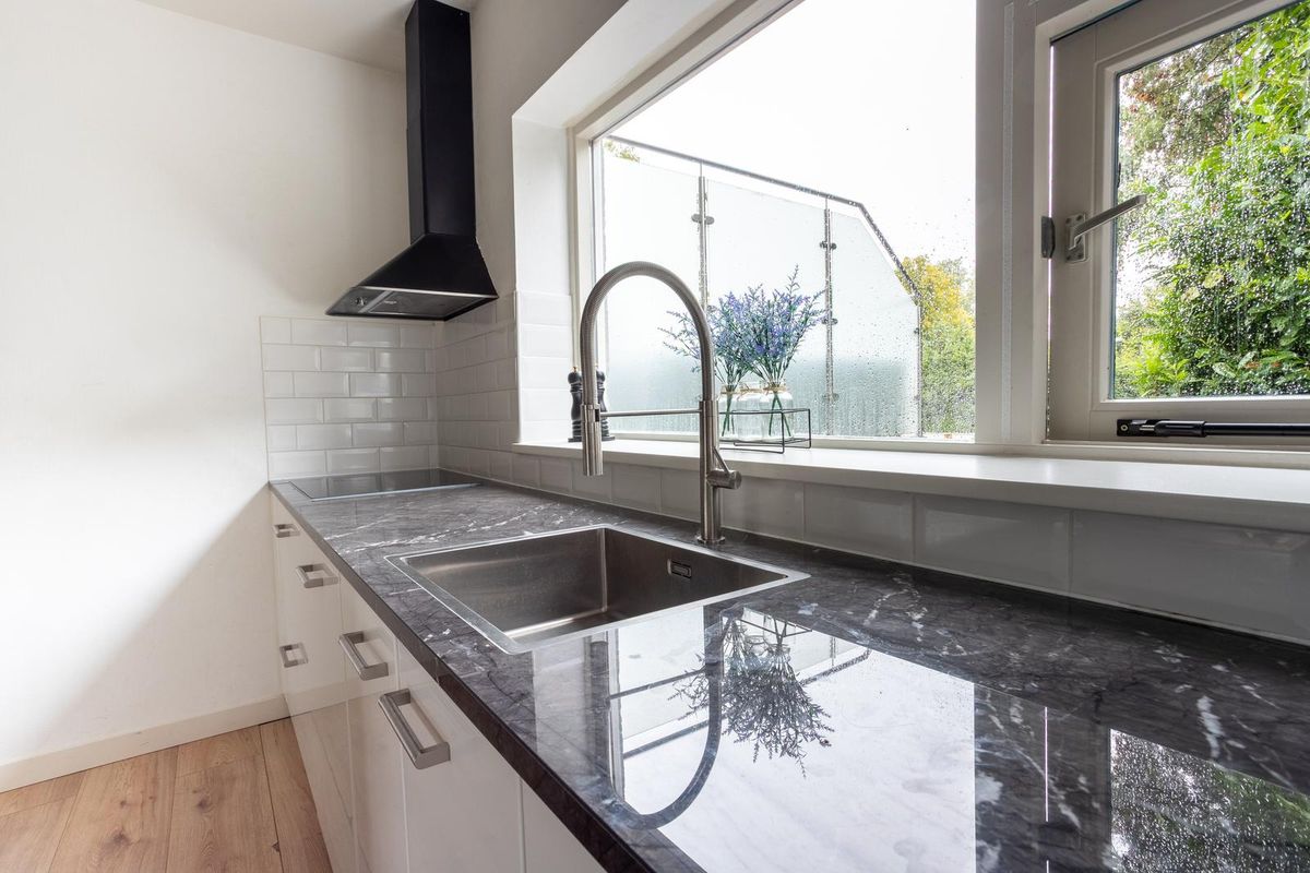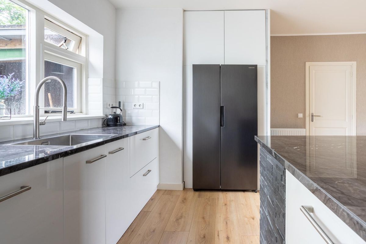 - Woonkamer & keuken: lichte woonkamer met laminaatvloer, acupanel wandbekleding en moderne keuken met inductiekookplaat, Miele vaatwasser, en koel-/vriescombinatie (ter overname).