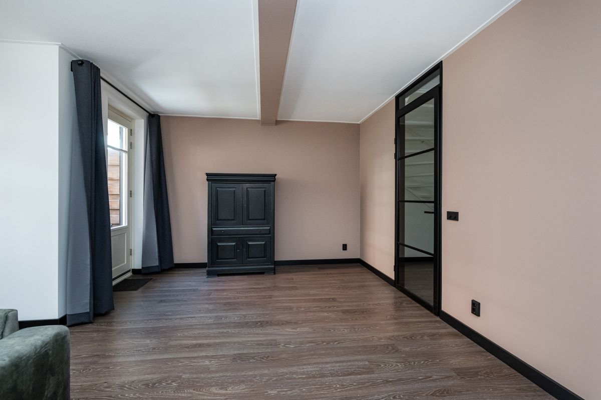 Laminaatvloer, radiatoren en toegang tot balkon.