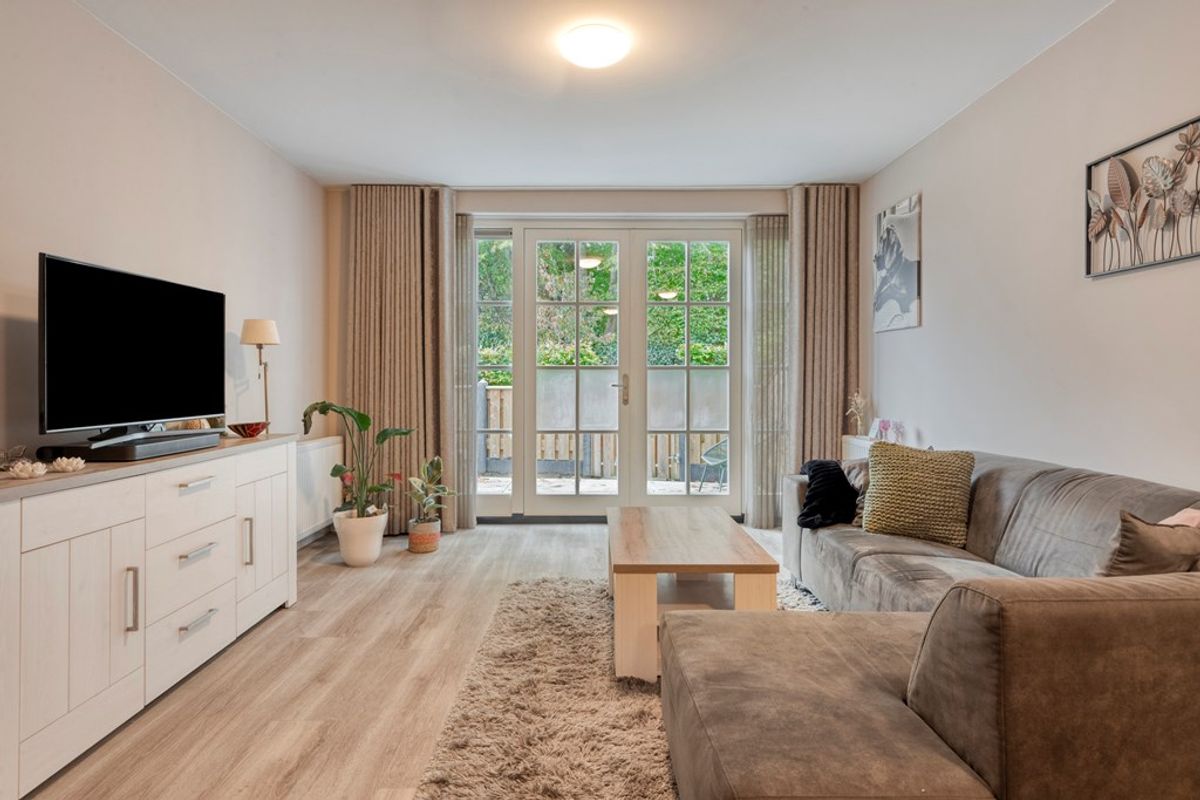 De woning beschikt over een eigen tuin, afgezet met een houten schutting.