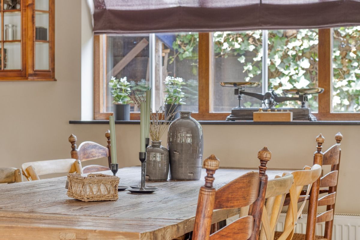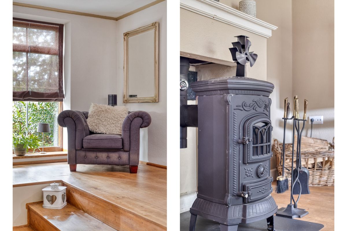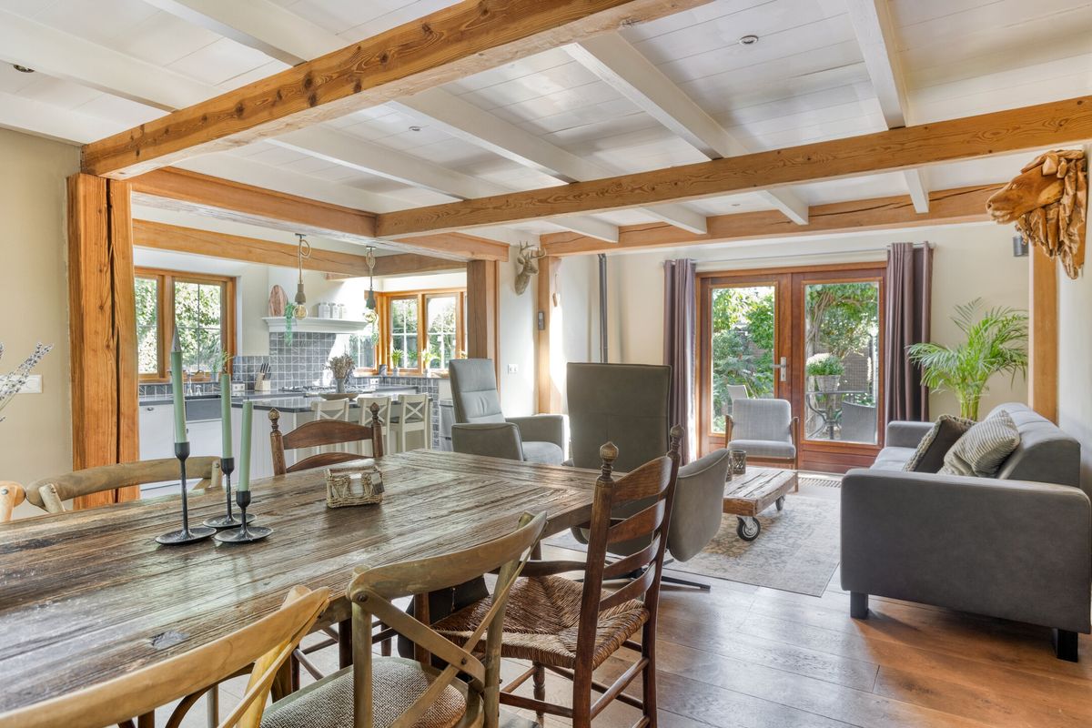 De sfeervolle woonkamer met niveauverschillen en authentieke balkenplafond is een plek waar u zich direct thuis voelt. Hier geniet u bij de knusse houtkachel of de palletkachel van warmte en gezelligheid. Via de openslaande deuren stapt u zo de tuin in – elke dag voelt hier als vakantie. Dankzij de aanwezige airco’s (2x) is het in de zomer heerlijk koel. De vloerwarming zorgt voor een uitstekend comfort in de woning.