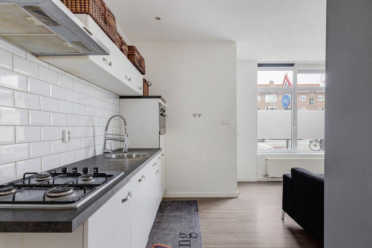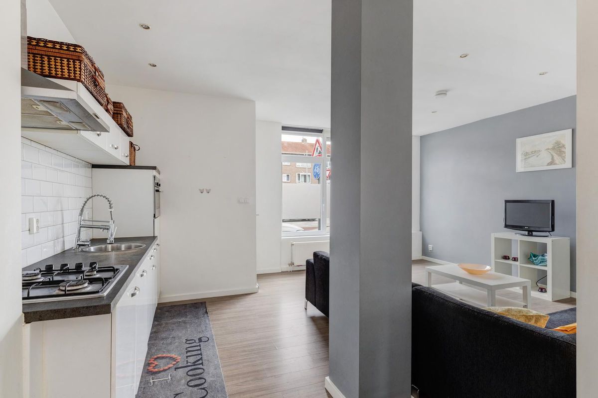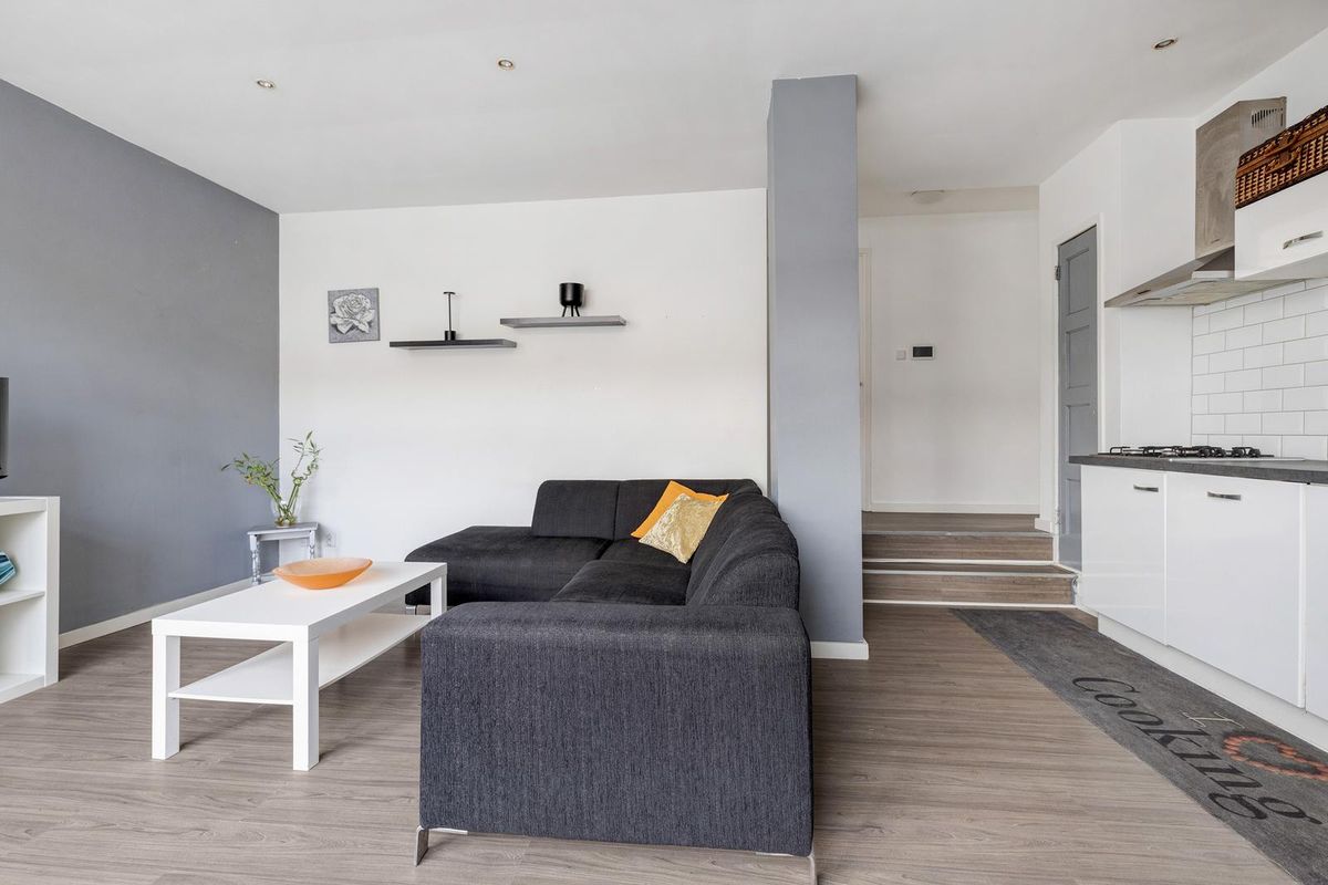 Via de voordeur, op straatniveau, kom je binnen in de hal. Door de hal kom in de fijne woonkamer met open keuken. Deze zijn gelegen aan de straatzijde. De keuken is voorzien van een combimagnetron, afzuigkap, kleine koelkast, vaatwasser en een 4-pits gaskookplaat. Via een klein trapje kom je bij de twee slaapkamers en ruime badkamer. De badkamer is voorzien van een inloopdouche, toilet en wastafel. De grote slaapkamer biedt toegang tot de grote tuin.