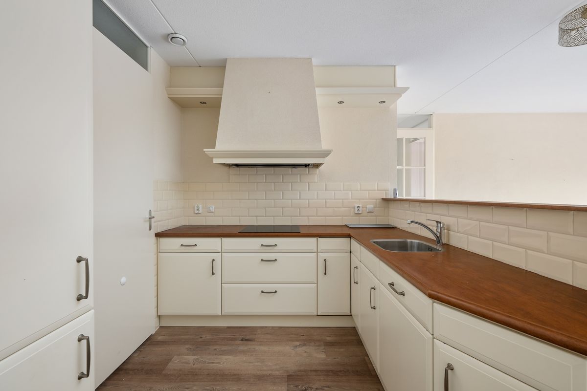 Via een 'half hoog' muurtje wordt de keuken van de woonkamer gescheiden.