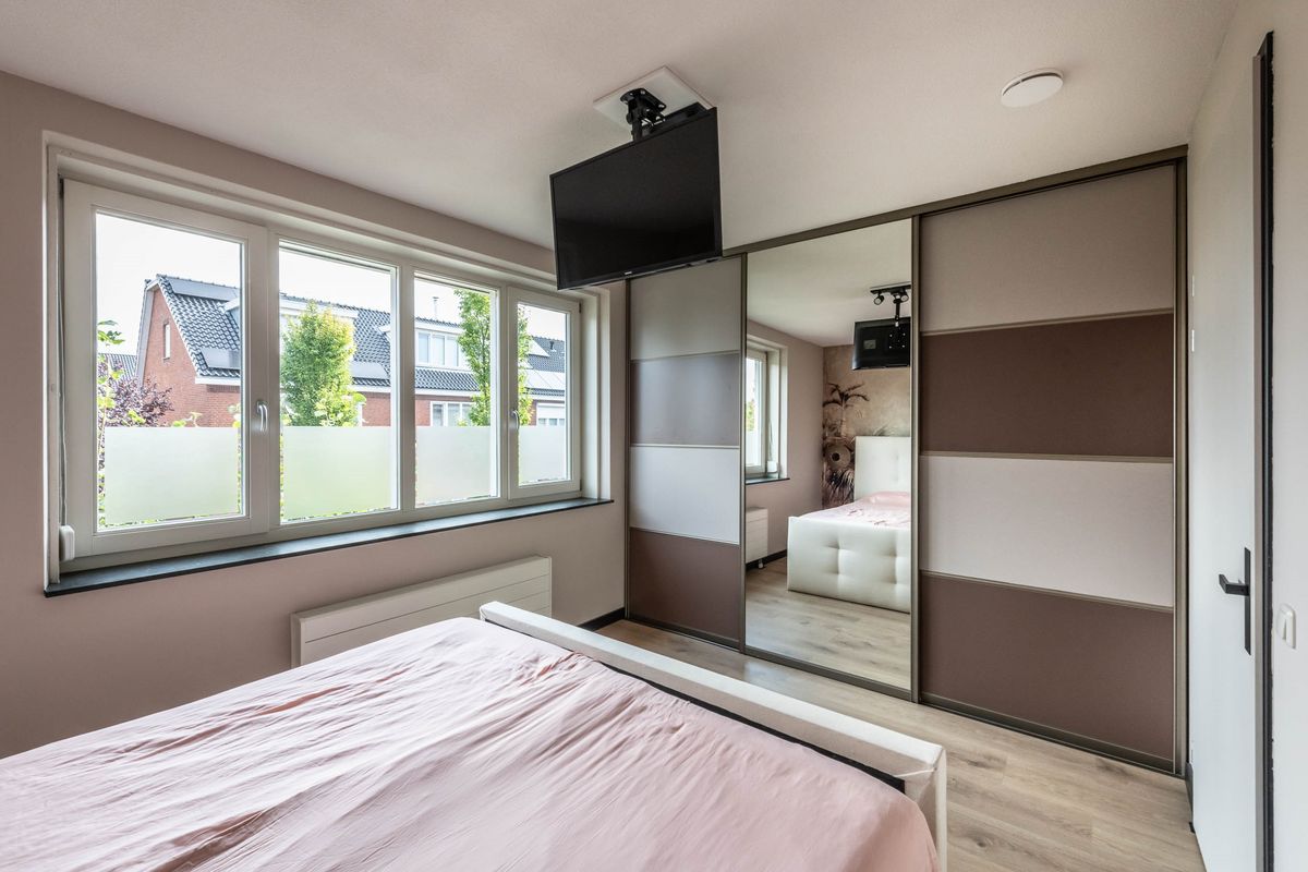 Op de eerste verdieping bevinden zich twee ruime slaapkamers die beide over de volle breedte van de woning zijn gelegen. De slaapkamer aan de voorzijde is voorzien van een vaste kastenwand met schuifdeuren. Beide slaapkamers beschikken over rolluiken en kunnen daardoor volledig worden verduisterd.