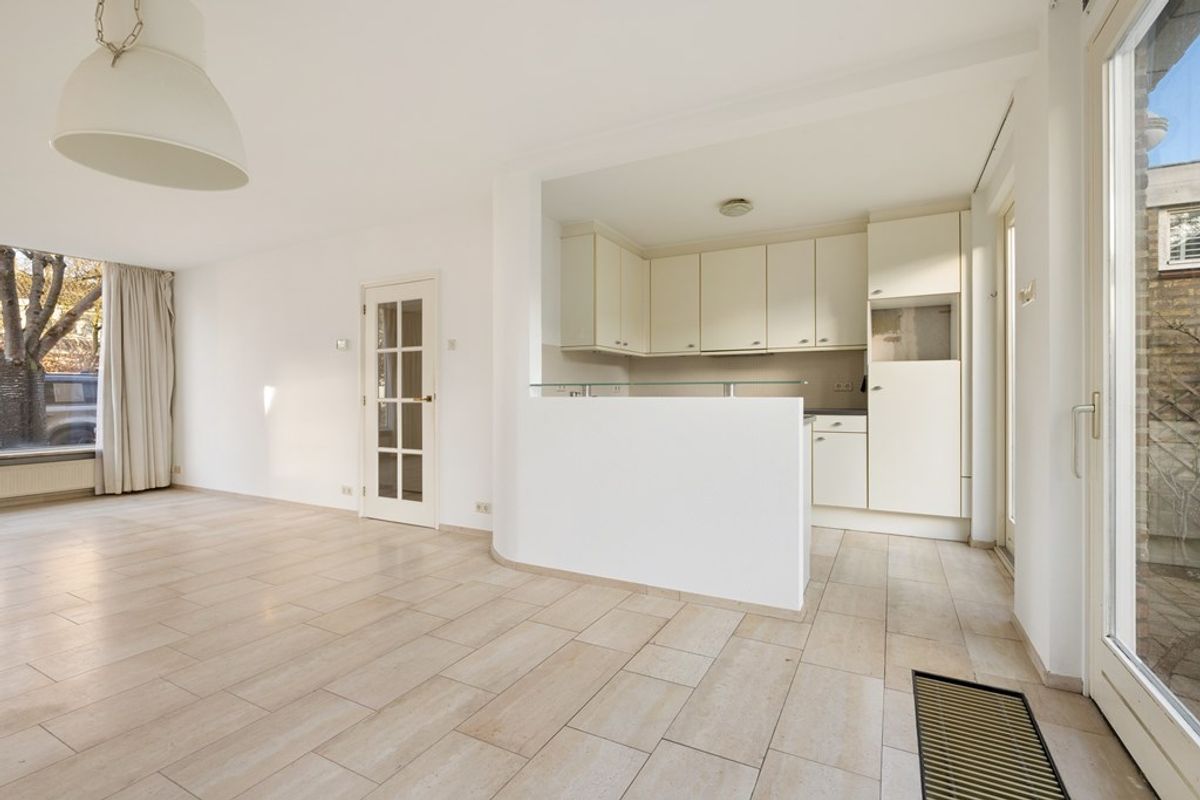 Entree/hal met meterkast, separaat toilet met fonteintje en trapopgang naar de eerste en tweede verdieping. Ruime, lichte doorzonwoonkamer met open haard uitgevoerd met schouw, grote raampartijen aan voor- en achterzijde, wat zorgt voor een prettige lichtinval en een open, ruimtelijk gevoel, de volledige begane grond vloer is afgewerkt met natuursteen [travertin]. Aansluitend bevindt zich de open keuken met directe toegang tot de achtertuin van circa 53 m².