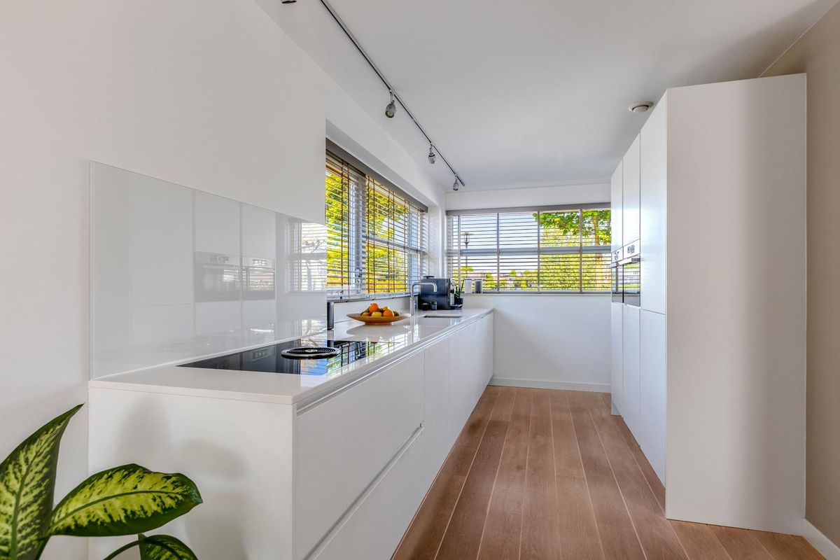 Wanneer je houdt van uitgebreid koken of graag uren staat te bakken, ben je bij het zien van de keuken verkocht! Vernieuwd in 2016 beschikt de keuken over alle moderne apparatuur voor het koken van de lekkerste maaltijden. Denk daarbij aan een inductiekookplaat met geïntegreerde afzuiging, stoomoven (Bosch), combimagnetron, koelkast, vriezer, kokend waterkraan (Quooker) en een vaatwasser. De hoge kasten en brede lades bieden meer dan genoeg opbergruimte voor servies en keukenvoorraad.