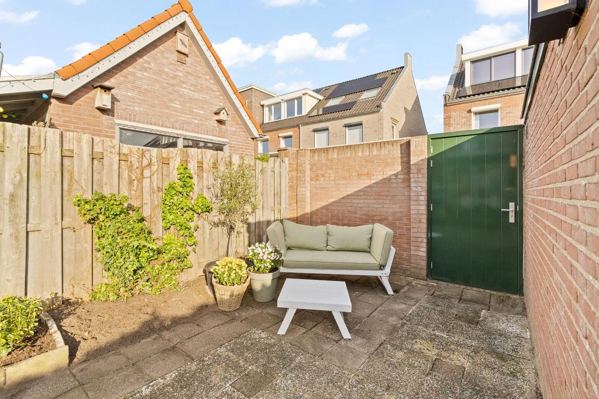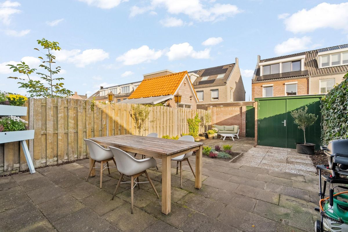 De woning beschikt over een voortuin die ruimte biedt voor een gezellig zitje of groenaccenten en een diepe achtertuin met meerdere mogelijkheden voor het creëren van terrassen. Ook beschikt de woning over een stenen berging met elektra, een achterom en 10 zonnepanelen. Dankzij de diepte van de tuin is er volop ruimte om van het buitenleven te genieten.