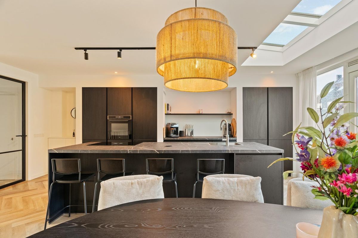 - Moderne open woonkeuken met kookeiland en luxe inbouwapparatuur;