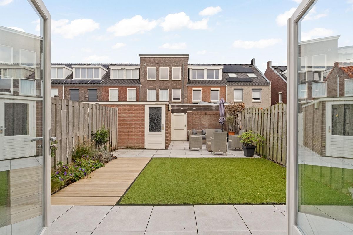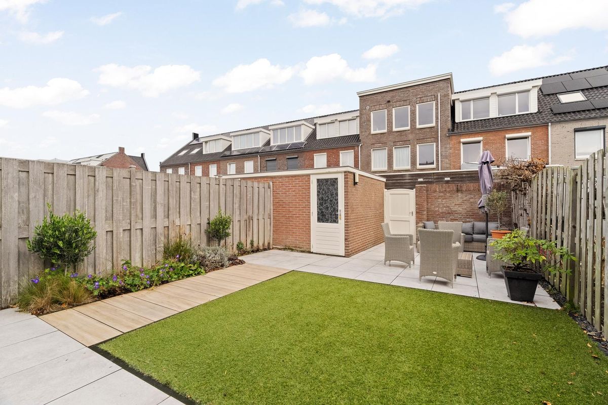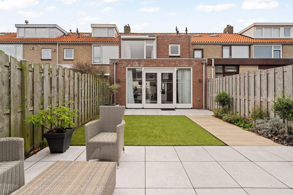 De woning is aan de achterzijde met maar liefst 4 meter uitgebouwd en dankzij de lichtkoepels bijzonder licht en ruimtelijk. Via openslaande deuren stap je de fraai aangelegde, onderhoudsvrije achtertuin in, voorzien van een vrijstaande stenen berging en achterom.