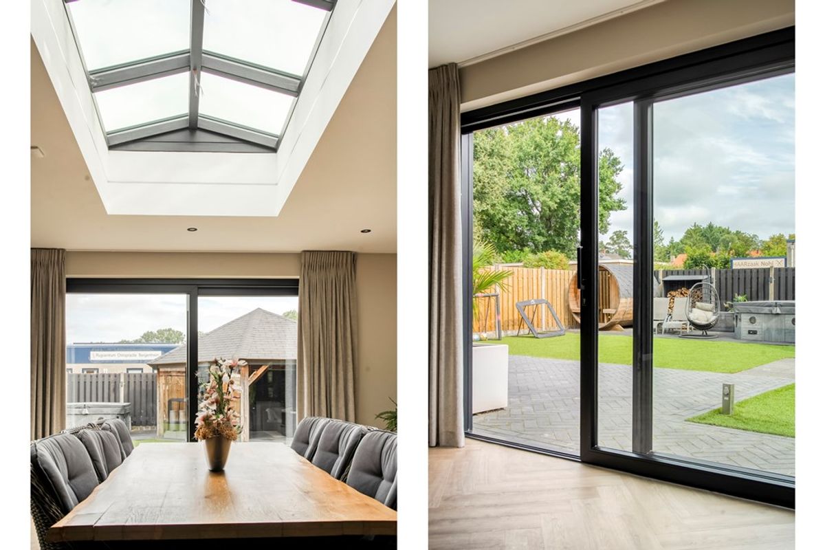 Laten we beginnen met de buitenkant: parkeer je auto’s – ja, echt meerdere – gewoon relaxed op je eigen terrein aan de zijkant van het huis. Nooit meer zoeken naar een plekje. Loop je vervolgens naar achteren, dan kom je direct in een supergezellige, riante tuin terecht, waar je bijna het hele jaar rond kunt loungen onder de grote overkapping (6x6m) met glazen pui. Regent het? Zet gewoon de glazen wand dicht en blijf lekker buiten. En alsof dat nog niet genoeg is; er staat óók een jacuzzi en zelfs een sauna, die (eventueel) ter overname beschikbaar zijn. Zie jij je hier al genieten met vrienden of familie?