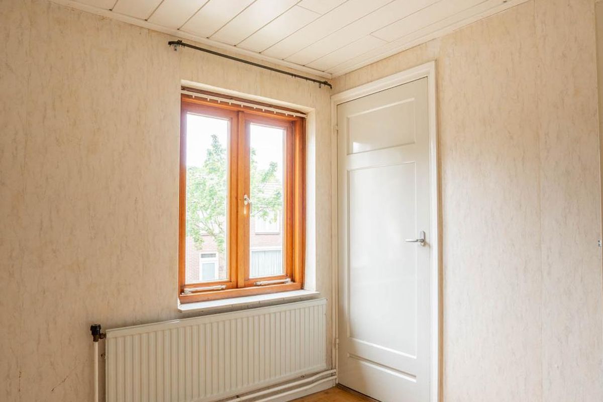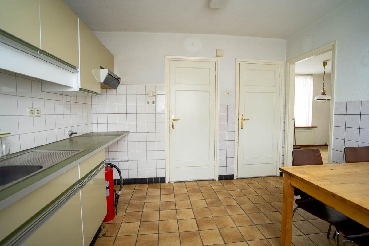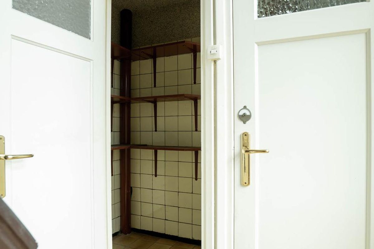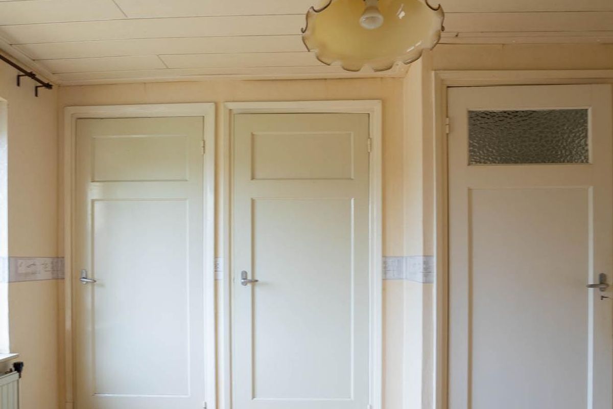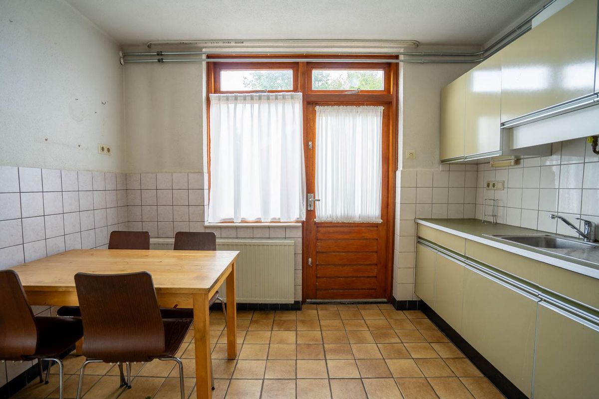 De tegelvloer is doorgelegd in de woonkamer en keuken. De woonkamer is een fijne lichte ruimte dankzij de grote raampartijen aan zowel de voor- als achterzijde. De keuken is dankzij het grote raam en de deur die direct toegang biedt tot de achtertuin een fijne lichte ruimte. De indeling biedt volop mogelijkheden om de keuken geheel naar eigen wens te moderniseren en in te richten. Een ideale plek om uw droomkeuken te realiseren.