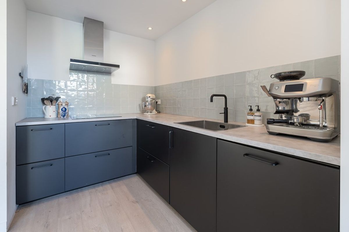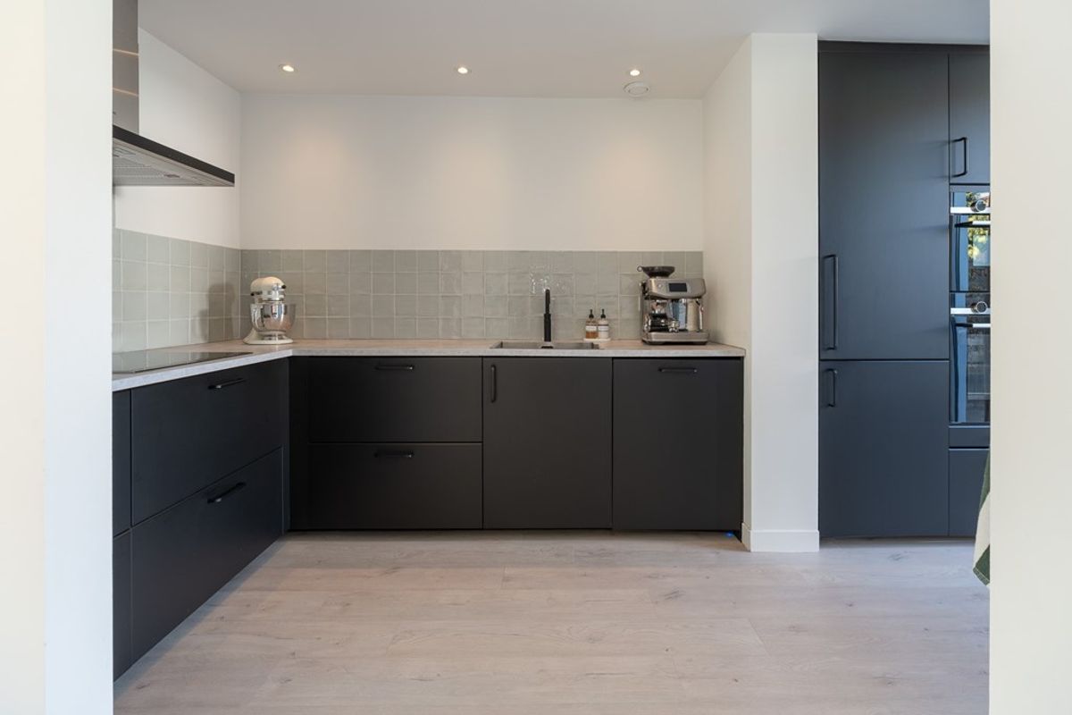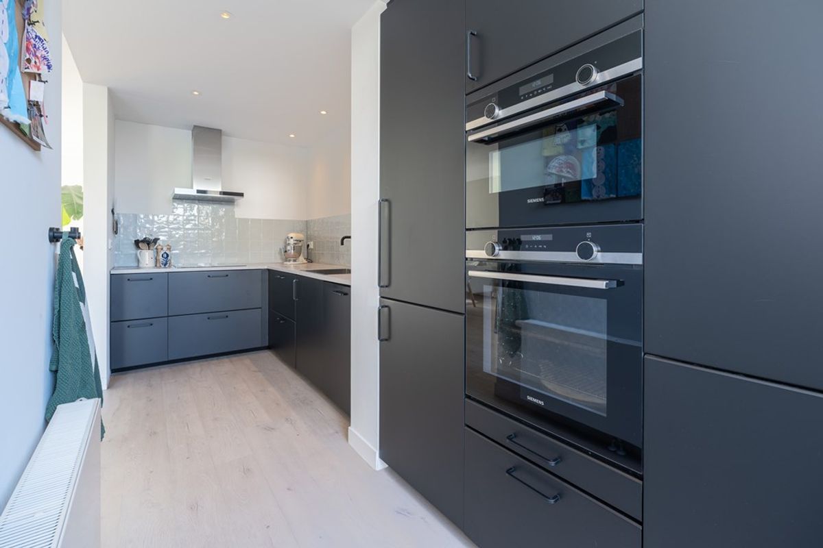 In 2019 is een volledig nieuwe keuken geplaatst, mat zwart met een licht grijs werkblad van krasvast kunststof. Deze keuken is voorzien van doorgaans Siemens inbouwapparatuur, waaronder: 4-pits inductie kookplaat, RVS afzuigkap, Quooker (2025) vaatwasser, grote koel-vries combinatie (2024), hete lucht oven en een combi magnetron. De wasmachine en droger zijn hier tevens keurig weggewerkt.