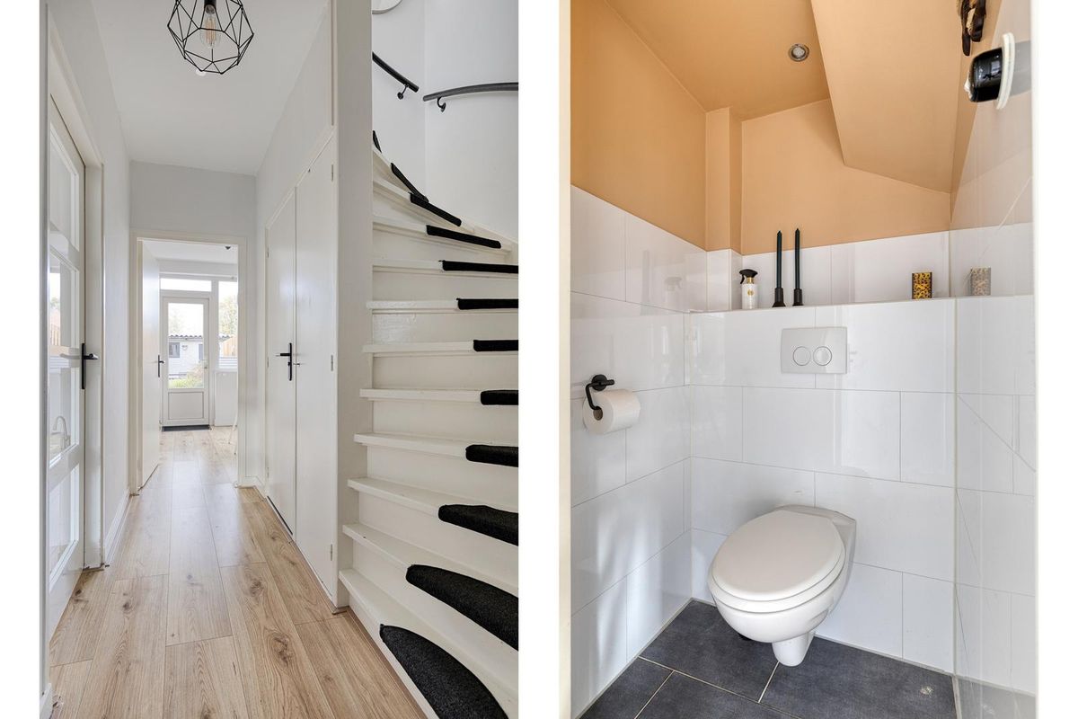 Bij binnenkomst ervaar je direct de fijne en lichte sfeer van deze woning. De entree biedt toegang tot de meterkast, het toilet, de trapopgang, de woonkamer en de keuken.