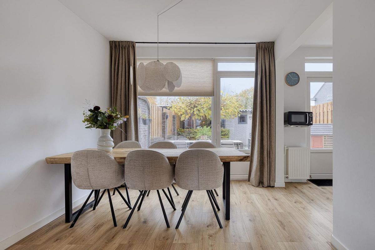 Dankzij de grote ramen aan zowel de voor- als achterzijde geniet je hier van veel natuurlijk licht en een fijn uitzicht op de tuin.
