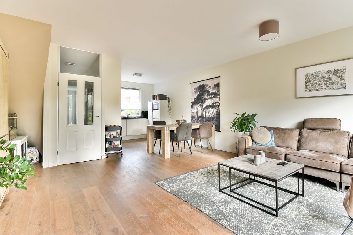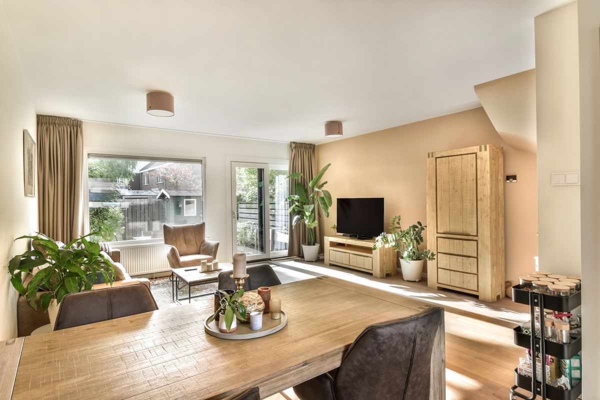 Bij binnenkomst valt de nette afwerking meteen op. De ontvangsthal met garderobe, meterkast met tien groepen en modern hangend toilet biedt een prettige entree tot het huis. Vanuit de hal stap je de lichte en sfeervolle woonkamer binnen, waar de eikenhouten vloer en de grote schuifpui zorgen voor een warme uitstraling en veel lichtinval. De tuin op het zuidoosten vormt een prachtig verlengstuk van de woonkamer. Met een houten berging, achterom, buitenkraan en elektrisch zonnescherm is dit een heerlijke plek om te ontspannen, te spelen of te genieten van lange zomeravonden.