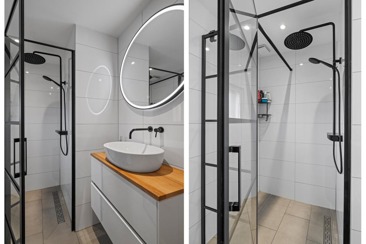 Via de vaste trap kom je op de verdieping met drie slaapkamers en de badkamer. De eerste slaapkamer ligt aan de achterzijde en wordt nu gebruikt als kinderkamer. Deze kamer beschikt over een balkon dat uitkijkt op de tuin. De tweede slaapkamer aan de achterzijde is de master bedroom. Hier is ruimte voor een groot bed en vind je een inbouwkast en een airco. Door de twee ramen heb je een fijn uitzicht op de groene achterzijde. De derde slaapkamer ligt aan de voorzijde en fungeert nu eveneens als kinderkamer. Ook hier is een handige inbouwkast aanwezig. De moderne badkamer uit 2020 is volledig betegeld en voorzien van een inloopdouche, een wastafelmeubel, een toilet en een designradiator. De twee ramen zorgen voor natuurlijk daglicht waarvan er een geopend kan worden voor ventilatie.
