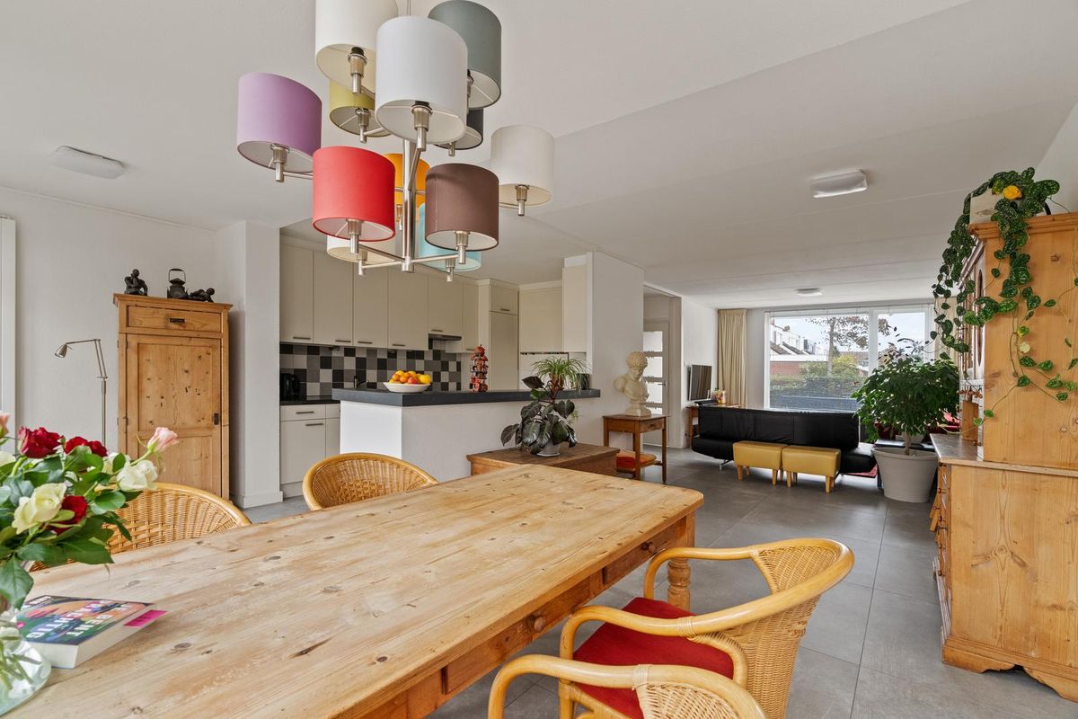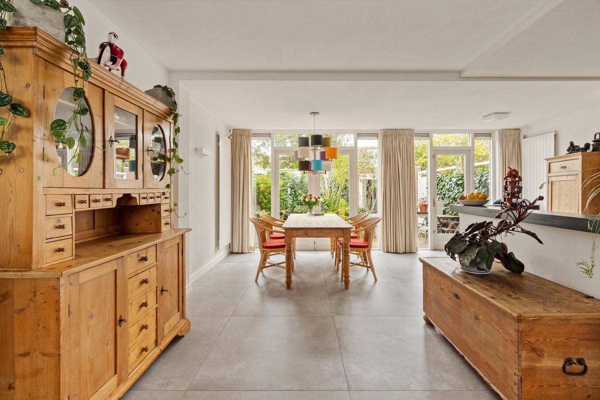 De uitgebouwde en lichte woonkamer heeft veel natuurlijk lichtinval door de grote raampartijen en is voorzien vloerverwarming en openslaande deuren naar de fraai aangelegde en zonnige achtertuin met achterom. Dankzij de open verbinding van de woon-/eetkamer met de keurige keuken — die is uitgerust met een natuurstenen aanrechtblad aan twee zijden — is dit de ideale plek voor gezellige etentjes en ontspannen familiedagen. De keuken is onder andere voorzien van een vaatwasser, inductiekookplaat, afzuigkap, oven, magnetron, koel-/vriescombinatie en veel opbergruimte.