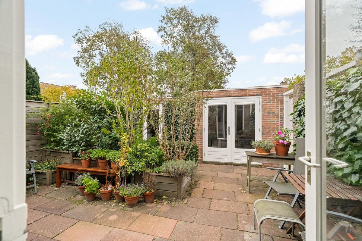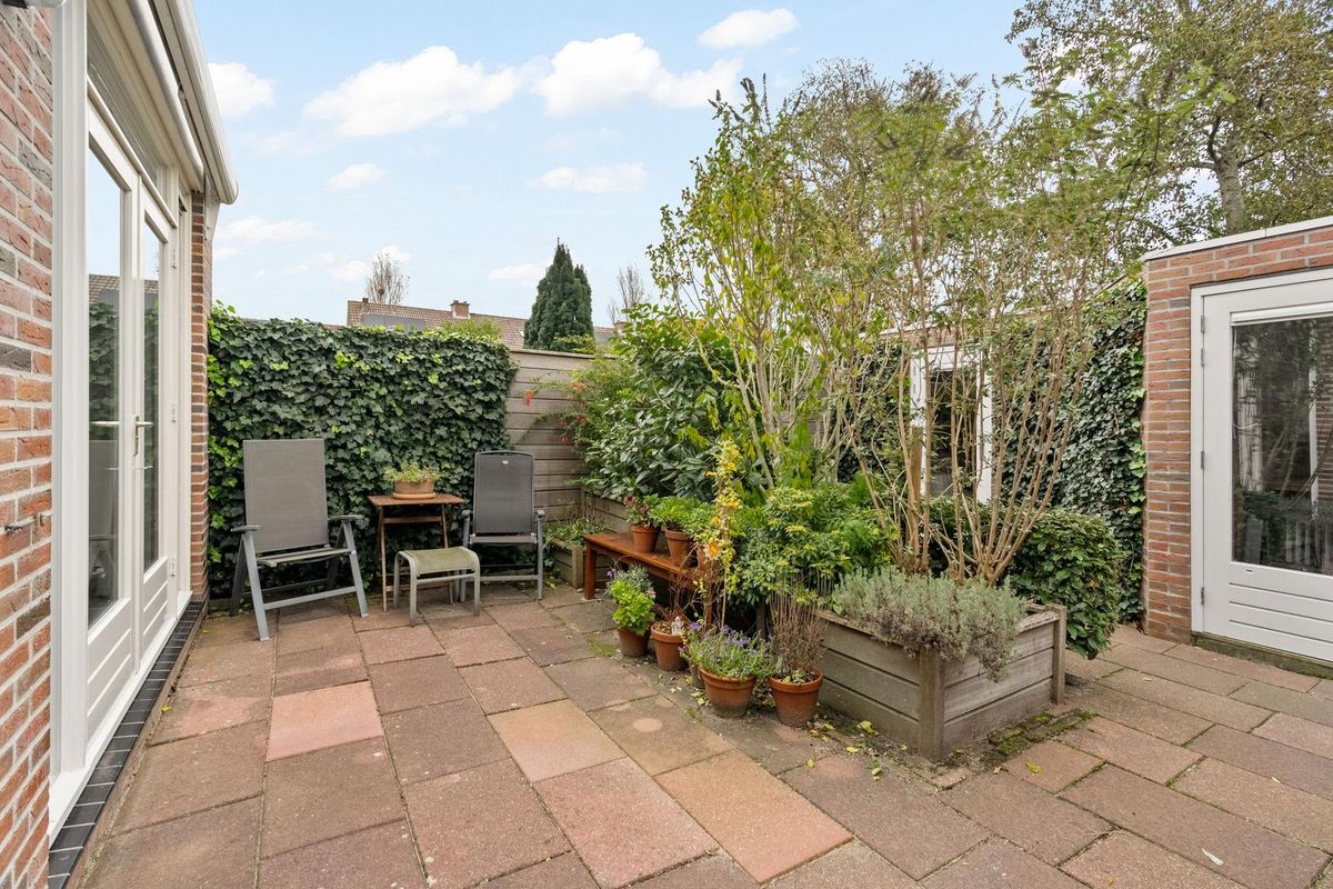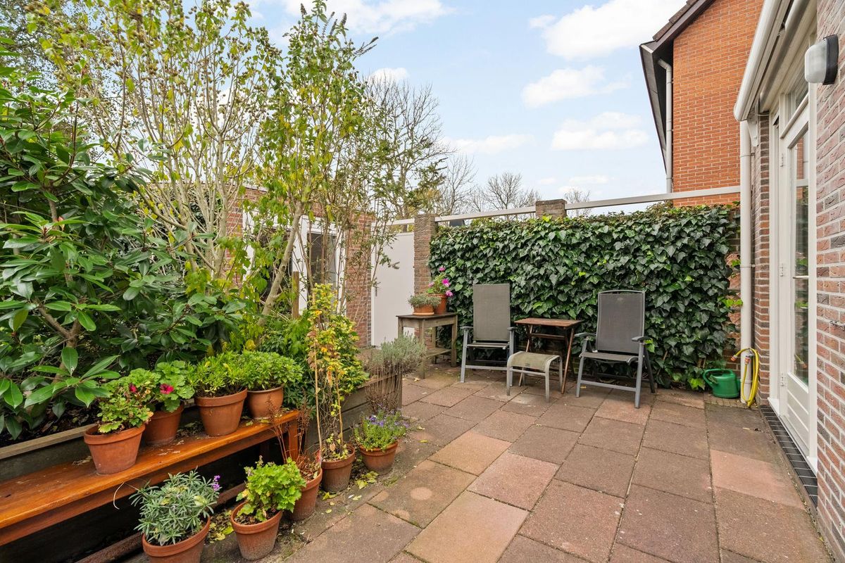 De achtertuin is zowel via de woonkamer als via de achterom bereikbaar.