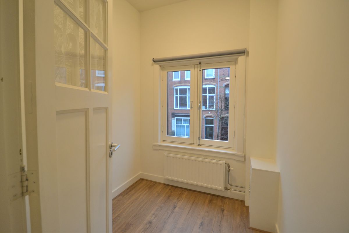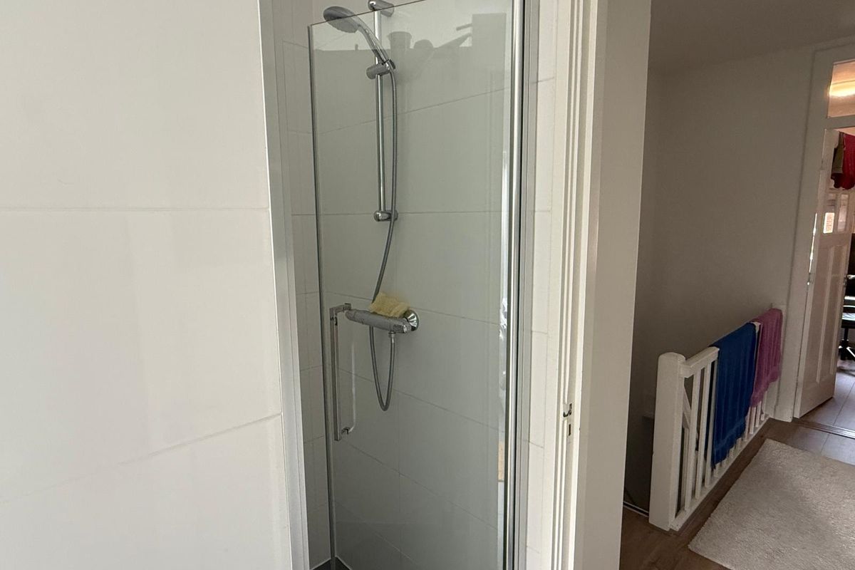 Op de tweede verdieping bevinden zich twee ruime slaapkamers van respectievelijk ca. 15 m² en 14 m², beide voorzien van praktische inbouwkasten en originele paneeldeuren die bijdragen aan de authentieke sfeer van de woning. De badkamer beschikt over een inloopdouche, tweede (zwevend) toilet, wastafel en aansluiting voor de wasmachine. Verder is er nog een tweede studeerkamer van ca. 5 m² en een cv-ruimte op de overloop met de opstelling van de cv-ketel.