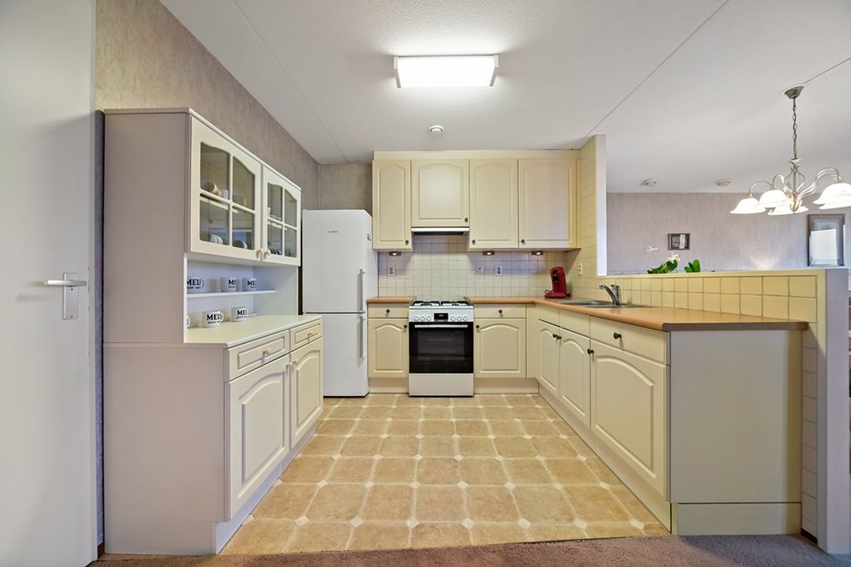 Entree van de woning met L-vormige gang/hal met meterkast. Geheel betegeld toilet met fonteintje. Bergruimte met opstelplaats CV combiketel. Aan de voorzijde van de woning bevindt zich de riante woonkamer met aangrenzend balkon en een levendig uitzicht. Dankzij de zijramen en de half open keuken voelt het appartement nog ruimer aan. Aan de voorzijde bevindt zich het deels overdekte balkon. De woonkamer is op diverse manieren in te delen. De keuken bevindt zich op een centrale plek in de woning. De keuken is netjes maar eenvoudig, opgesteld in een L-vorm en voorzien van enkele apparatuur. Achter de keuken bevindt zich een praktische berging/bijkeuken. Via de centrale gang komen we bij de ruime badkamer. De badkamer beschikt over een ligbad, een separate doucheruimte en een wastafel. De badkamer is tot aan het plafond betegeld. Tegenover de badkamer bevindt zich een afgesloten wasruimte met opstelplaats voor wasmachine en droger. Aan de achterzijde van het appartement zijn de slaapkamers gesitueerd. Oorspronkelijk waren hier drie slaapkamers, maar de huidige eigenaar heeft er voor gekozen om twee grote kamers te maken. De hoofdslaapkamer is daarmee maar liefst 25 m2 groot geworden. Eventueel bestaat de mogelijkheid om hier weer drie slaapkamers van te maken.