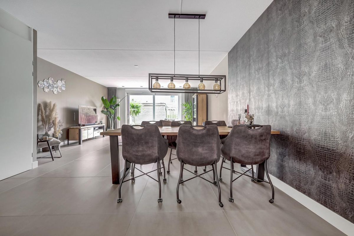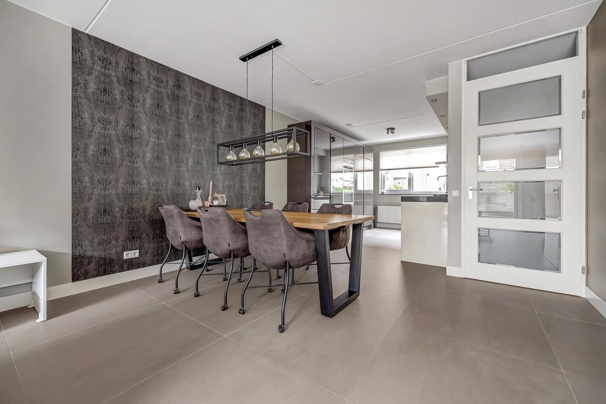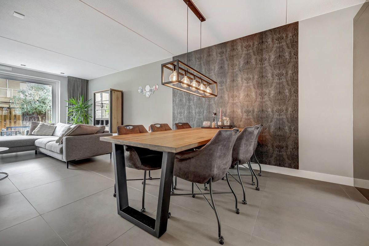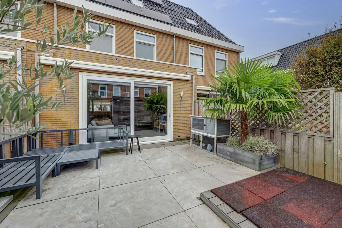 De schuifpui in de woonkamer geeft direct toegang tot de zonnige achtertuin, waar je volop kunt genieten van lange zomeravonden en gezellige momenten met familie en vrienden. De tuin heeft een vrijstaande houten berging en een achterom. Op warme dagen biedt het elektrische zonnescherm een fijne schaduwplek.