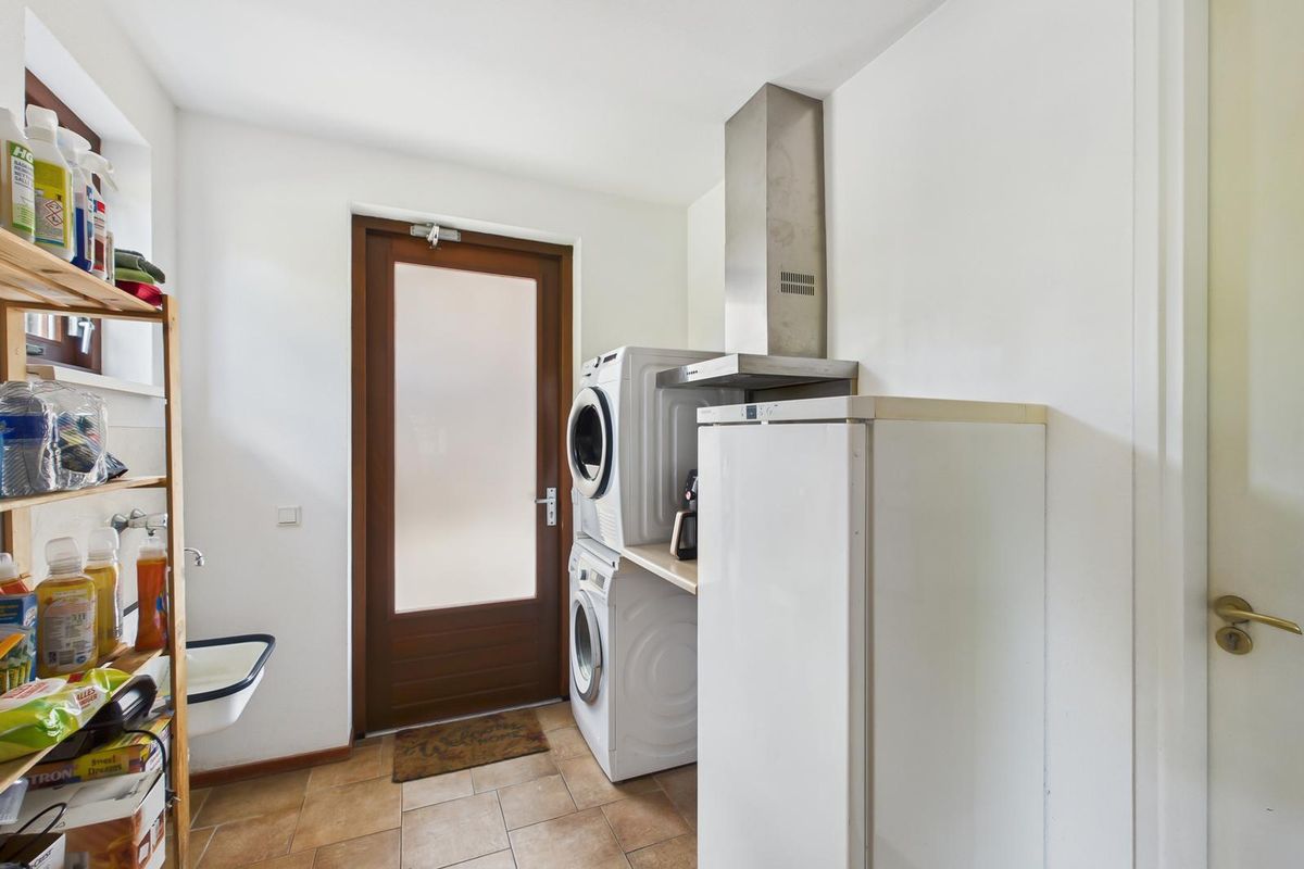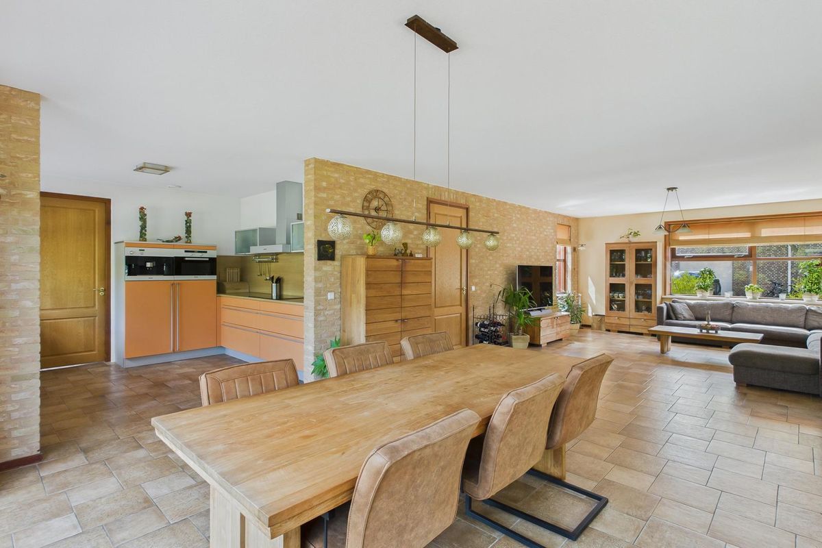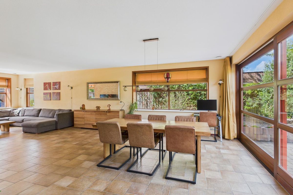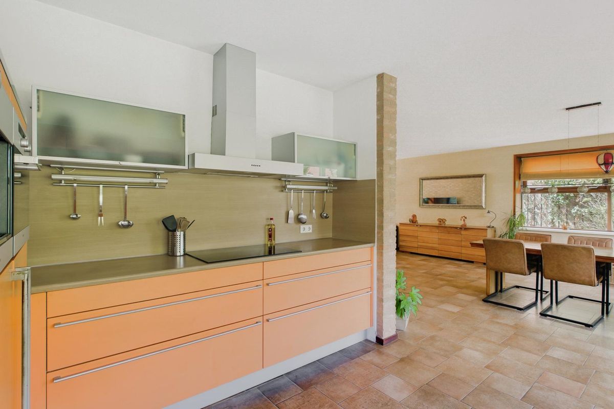 Binnen geniet u van veel ruimte, maar liefst 182 m2 woonoppervlak. Via de hal met meterkast, toilet en trapopgang bereikt u de royale woonkamer van circa 52 m2. Grote ramen en een brede schuifpui zorgen hier voor een prettige lichtinval en direct contact met de tuin. De open keuken is compleet ingericht met o.a. inductiekookplaat, afzuigkap, vaatwasser, twee koelkasten en een ingebouwd koffieapparaat. Aansluitend vindt u de praktische bijkeuken met witgoedaansluitingen, een extra afzuigkap (ideaal bij bijvoorbeeld frituren), een achterdeur naar de carport en een doorgang naar de inpandige, verwarmde garage (4,56 x 3 m).