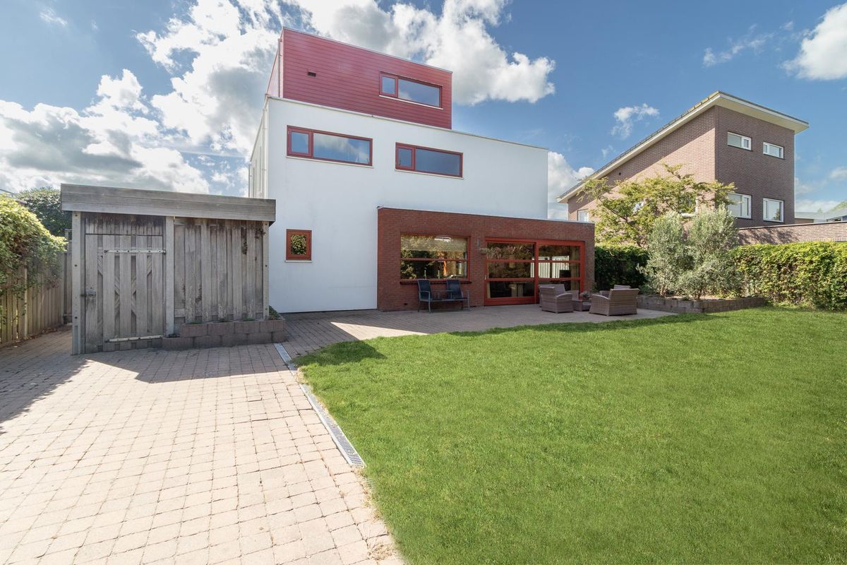 Buiten is het volop genieten. Aan de voorzijde ligt een brede oprit met plek voor meerdere auto’s, waarvan één onder de carport. Achter het huis strekt zich een royale tuin uit, bereikbaar via een achterom. Hier vindt u twee terrassen, zodat u de hele dag van de zon kunt profiteren. Daarnaast is er een houten berging voor extra opslag.