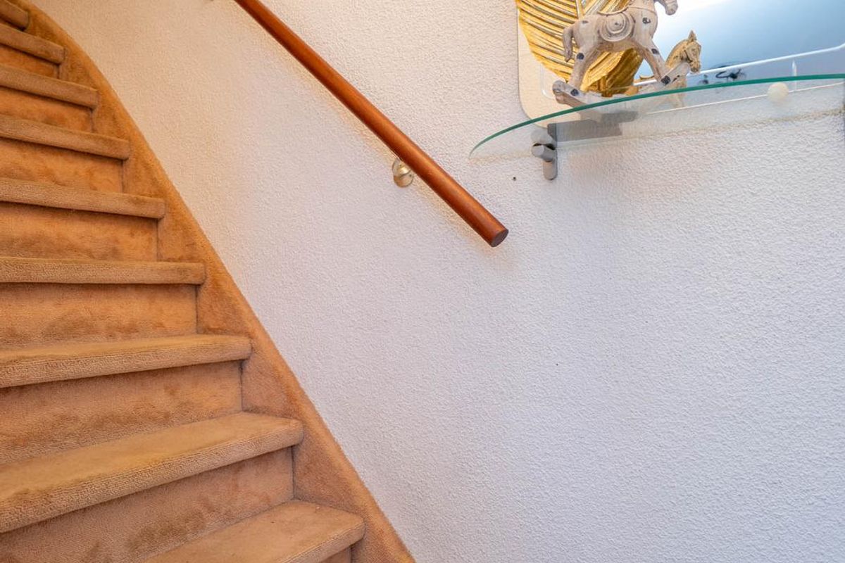 Hier bevinden zich drie ruime slaapkamers met laminaatvloeren, gestuukte wanden en plafonds, en rolluiken. De moderne badkamer is volledig betegeld en beschikt over een inloopdouche, wastafel, toilet en een raam voor natuurlijke ventilatie. Alles netjes en smaakvol afgewerkt.