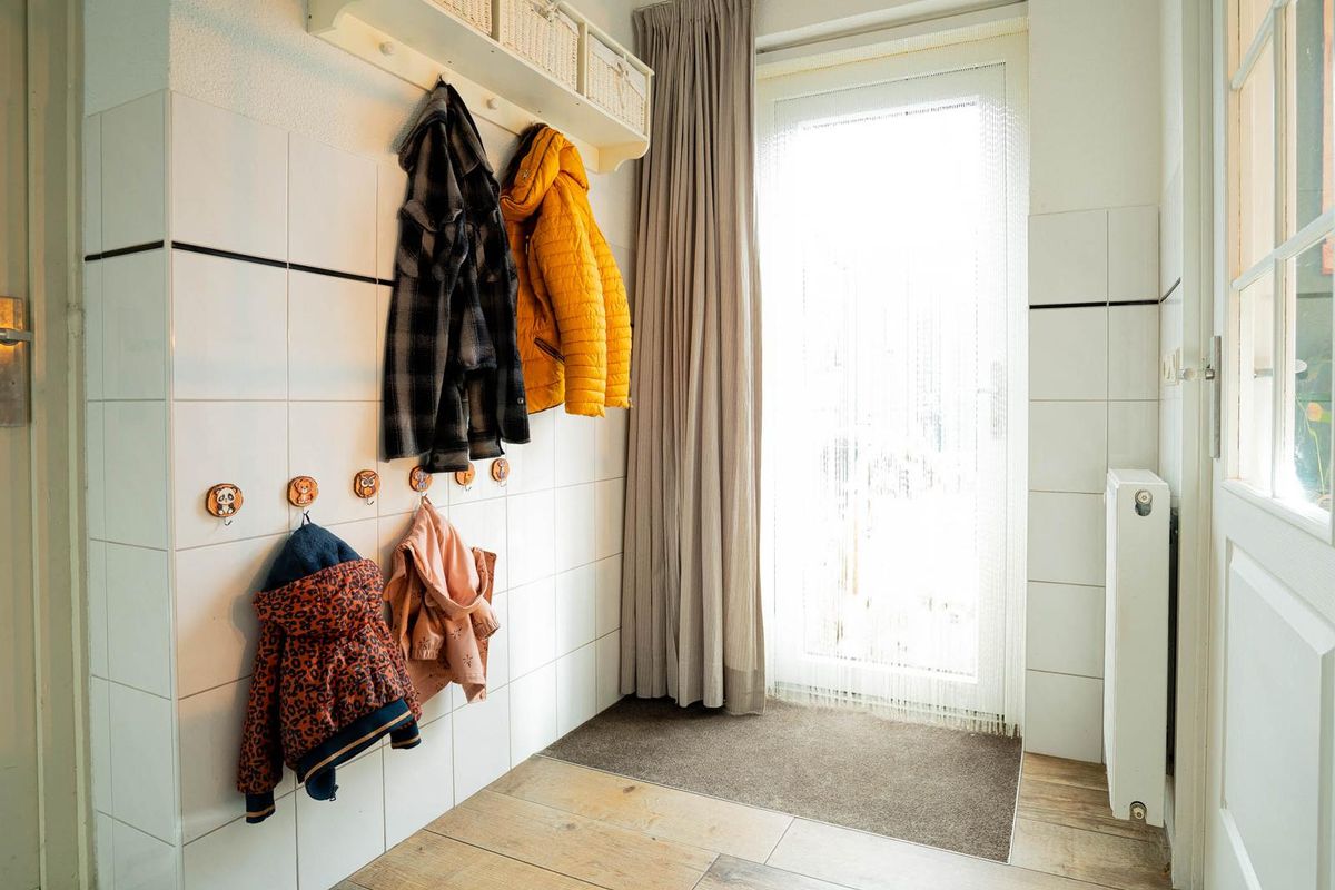 Bij binnenkomst in de lichte hal met houten vloer en gestuukte wanden voelt u zich direct welkom. Vanuit de hal bereikt u de royale woonkamer, het toilet en de keuken.