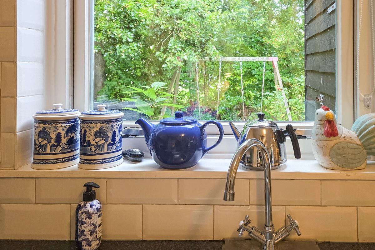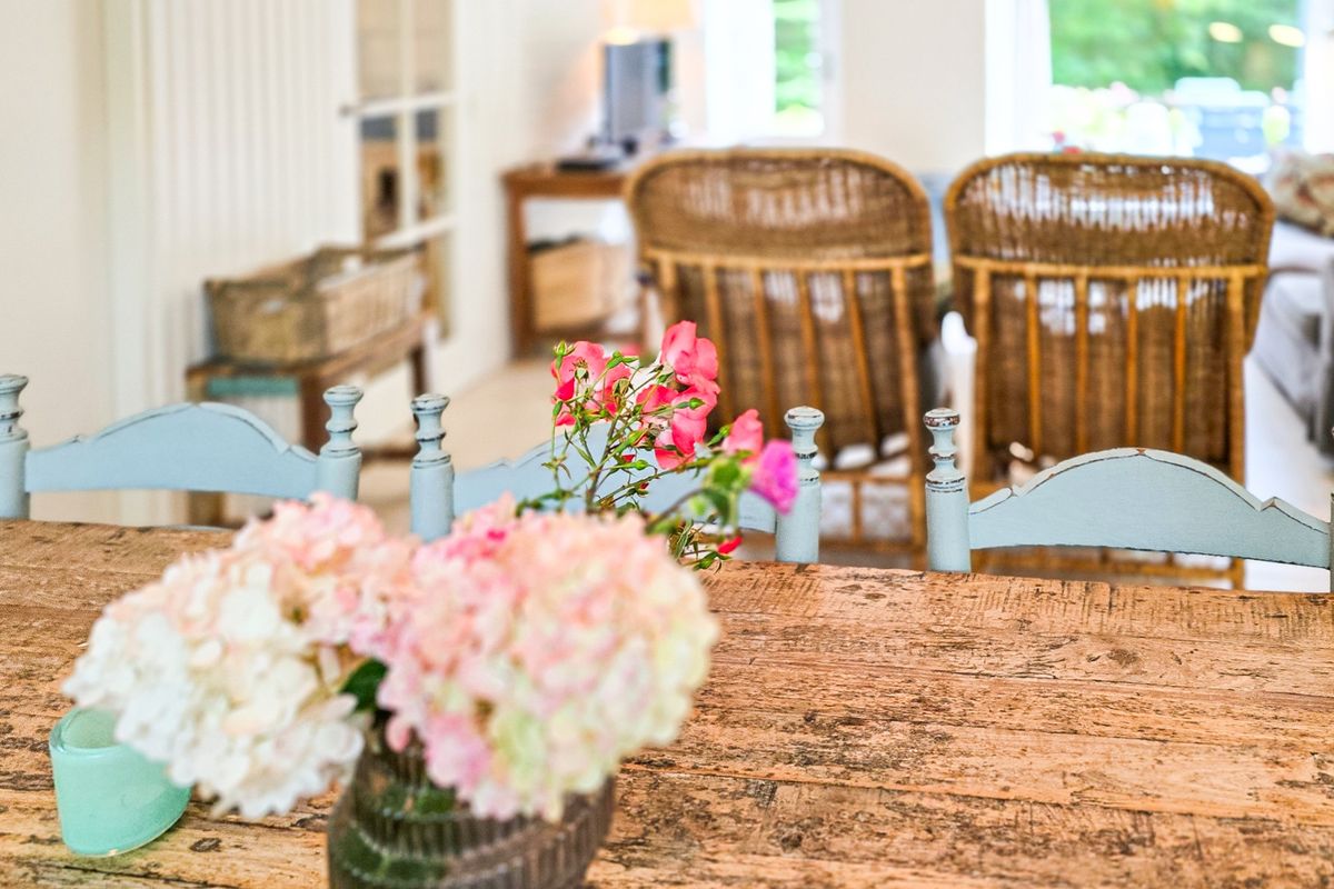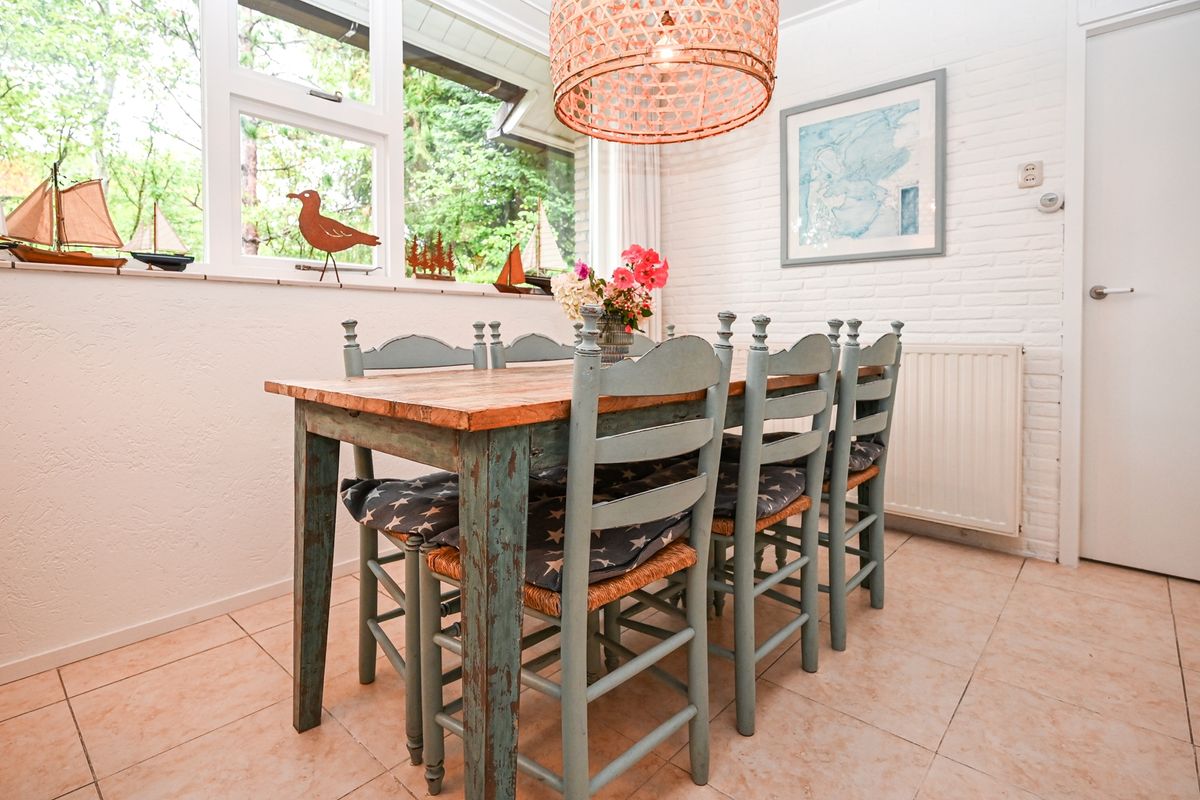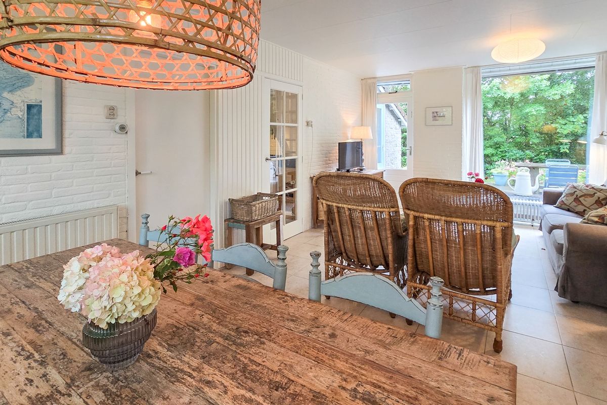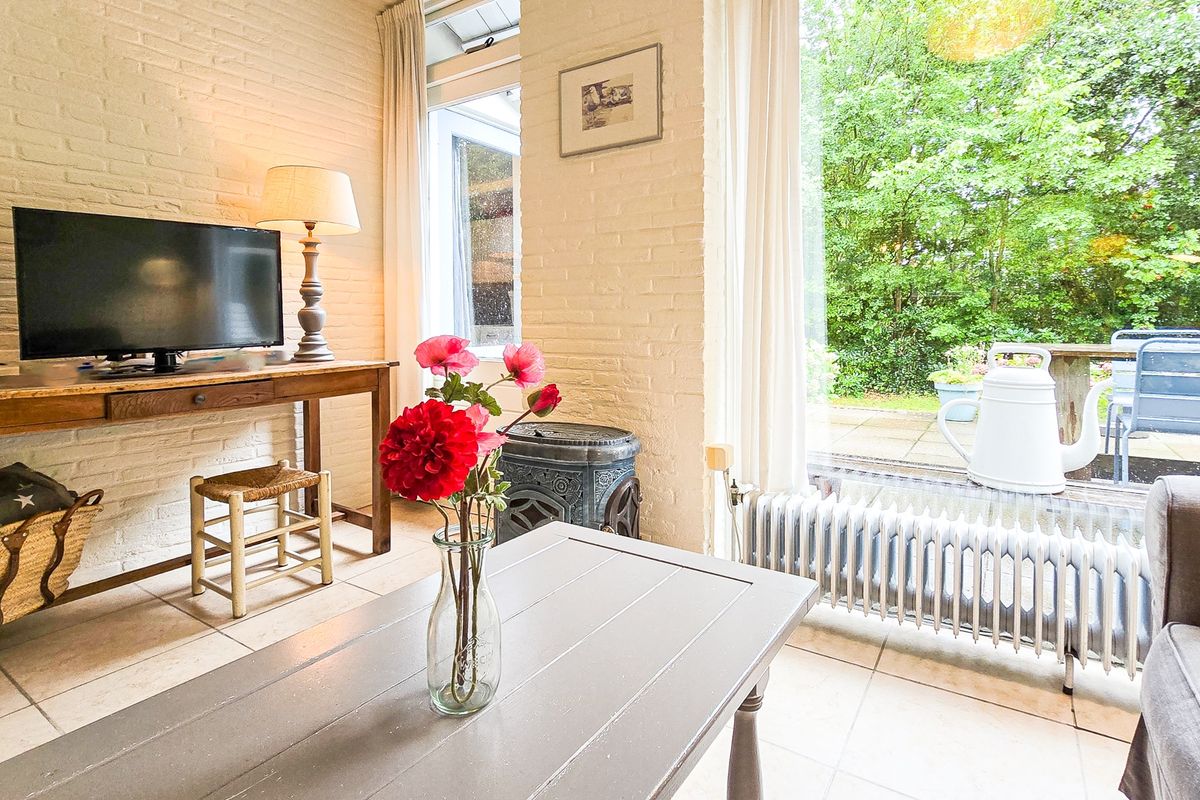 ‘De Stuuk’ is met zorg onderhouden en combineert een lichte, sfeervolle inrichting met praktische indeling. De woonkamer, met ramen aan beide zijden en uitzicht op de tuin, ademt ruimte en gezelligheid, waarbij de antieke Franse houtkachel een warme sfeer toevoegt. Aangrenzend bevindt zich de keuken, voorzien van moderne gemakken, met doorloop naar een praktische bijkeuken.
