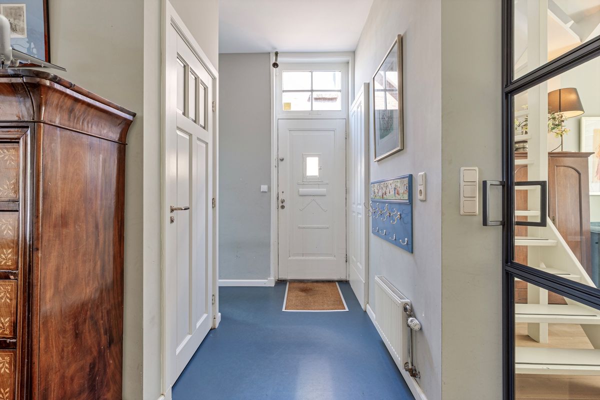 De woning ademt authenticiteit dankzij de vele originele details, zoals paneeldeuren en glas-in-loodramen en combineert dit met modern wooncomfort.