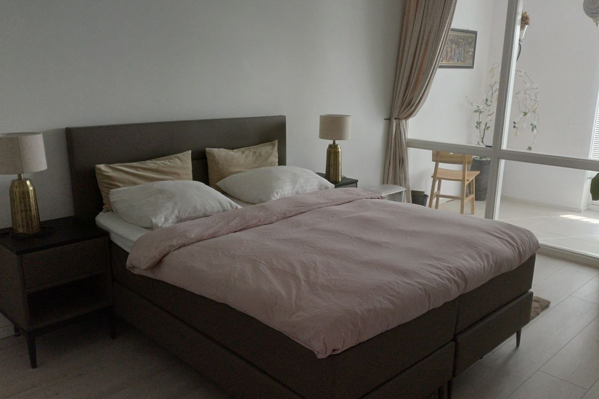Het appartement beschikt over drie slaapkamers: twee kleinere kamers die ideaal zijn als kinderkamer of werkkamer, en een ruime hoofdslaapkamer. De luxe badkamer is smaakvol betegeld en uitgerust met een ligbad, een inloopdouche en een wastafelmeubel met grote spiegelwand.