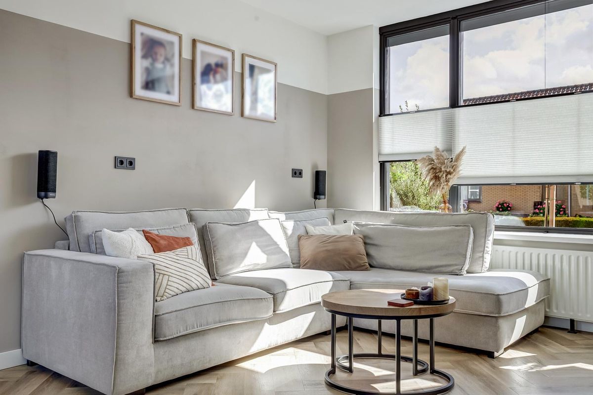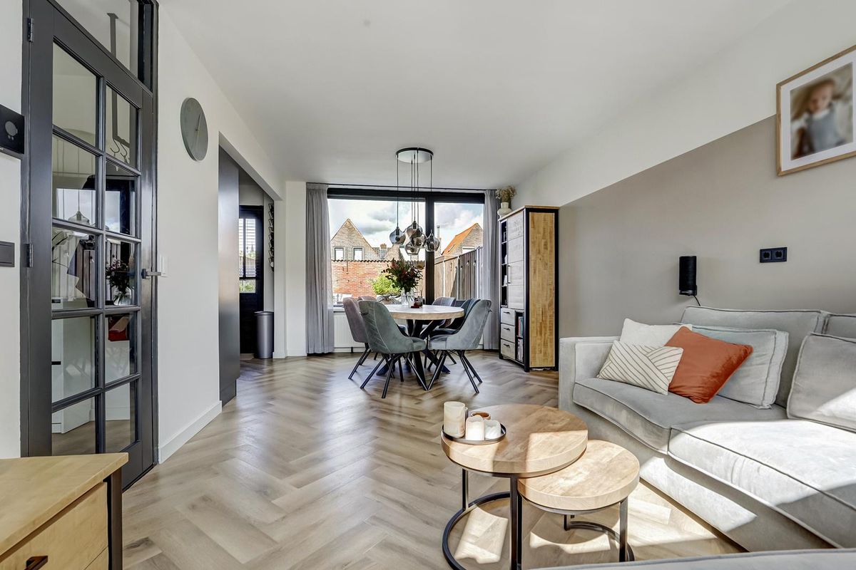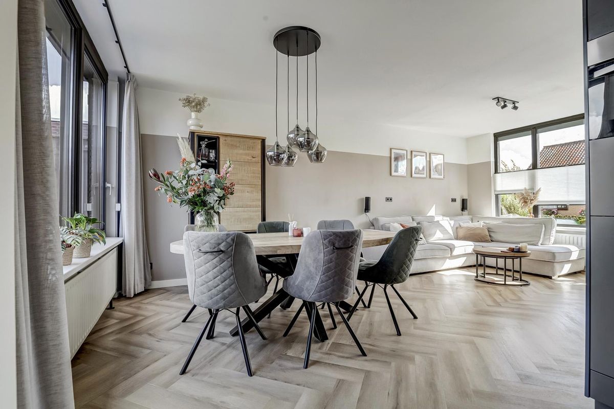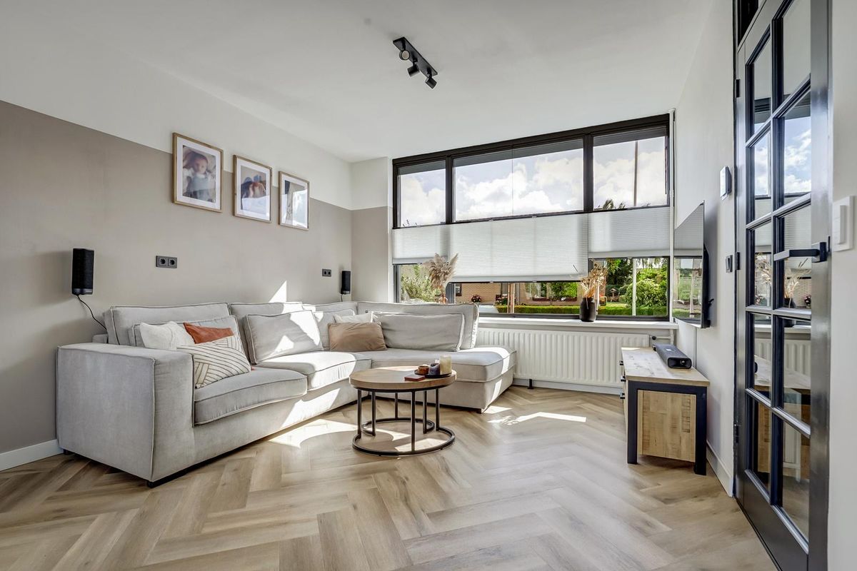 • Luxe afgewerkte woonkamer met visgraatvloer