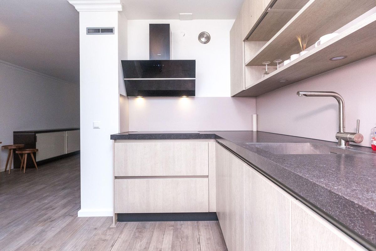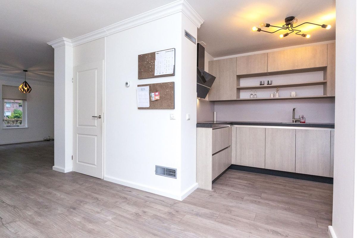 Je stapt binnen in een ruime hal met plek voor jassen, schoenen en een warm welkom. Vanuit hier loop je door naar de woonkamer: licht, ruimtelijk en gericht op het water. De open keuken sluit hier mooi op aan. Deze keuken is recent nog vernieuwd. Strak, fris en voorzien van de benodigde inbouwapparatuur en genoeg werkruimte voor wie graag kookt.