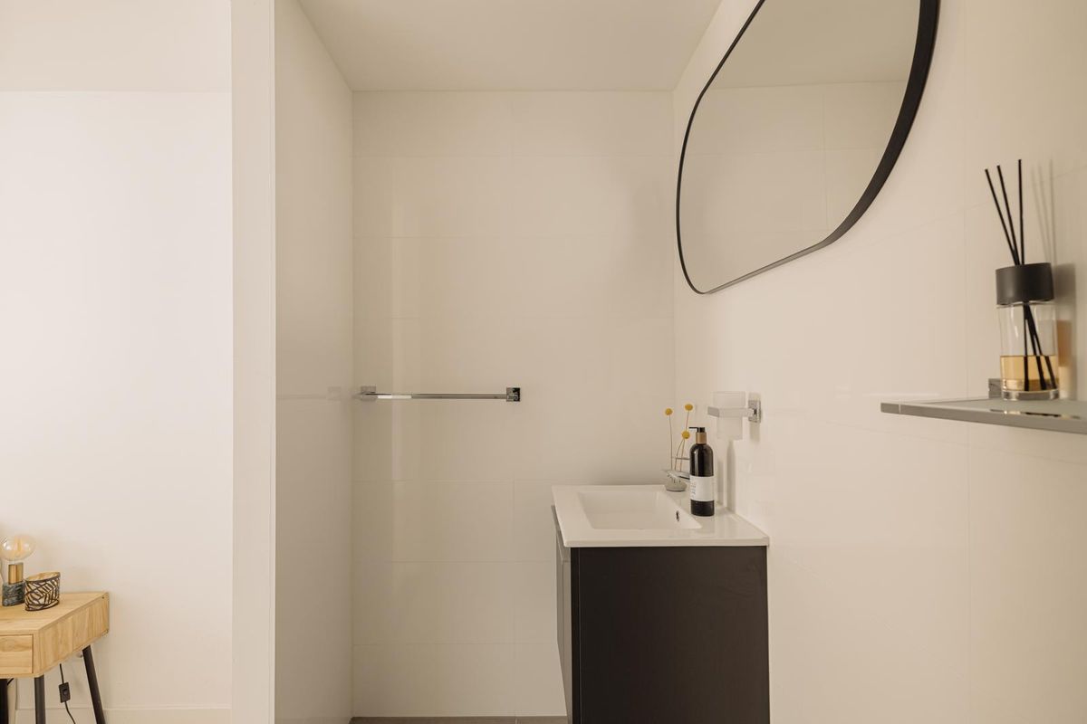 Via de lift of trap bereik je de 1e verdieping van het goed onderhouden complex. De woning is privé gelegen en deelt de galerij niet met andere appartementen. Je hebt daarom een privé terras aan de voorzijde van het appartement. Je komt de woning binnen in een hal, voorzien van inbouwspots, met toegang tot alle vertrekken. De lichte woonkamer is gelegen aan achterzijde en is voorzien van grote raampartijen en een moderne open keuken met inbouwapparatuur. Door de vierkante vorm is de woonkamer zeer praktisch ingedeeld. De slaapkamer met en-suite badkamer zijn aan voorzijde gelegen. Vanuit de hal heb je tevens toegang tot een aparte wasruimte, een separaat toilet en twee bergruimtes.