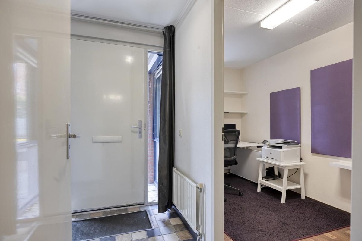 Of je nu via de eigen garage binnenkomt of gewoon door de voordeur, de entree van deze woning voelt meteen verzorgd en uitnodigend aan. Alles is strak afgewerkt en goed onderhouden, wat direct een prettige eerste indruk geeft. In de hal vind je het separate toilet, de toegang tot een praktische werk- of hobbykamer (perfect als thuiskantoor of speelruimte!) en de trap naar de eerste verdieping.