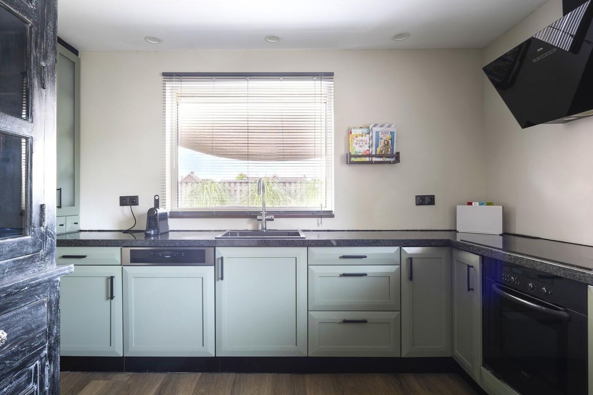 - De keuken beschikt over een kookplaat, afzuigkap, magnetron, oven, koelkast, kokend waterkraan en een vaatwasser.