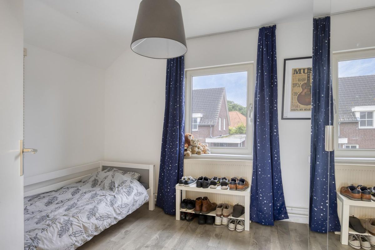 De overloop, voorzien van een vaste kast, biedt toegang tot drie slaapkamers en de badkamer. Alle slaapkamers beschikken over vaste kasten, waarvan één slaapkamer is voorzien van een loopdeur naar het dak. De badkamer is uitgerust met een ligbad met douche, een dubbele wastafel met meubel en een toilet. Deze verdieping is voorzien van een fraai laminaat.