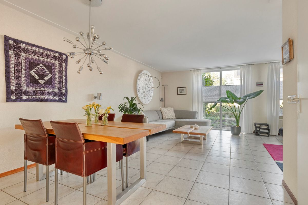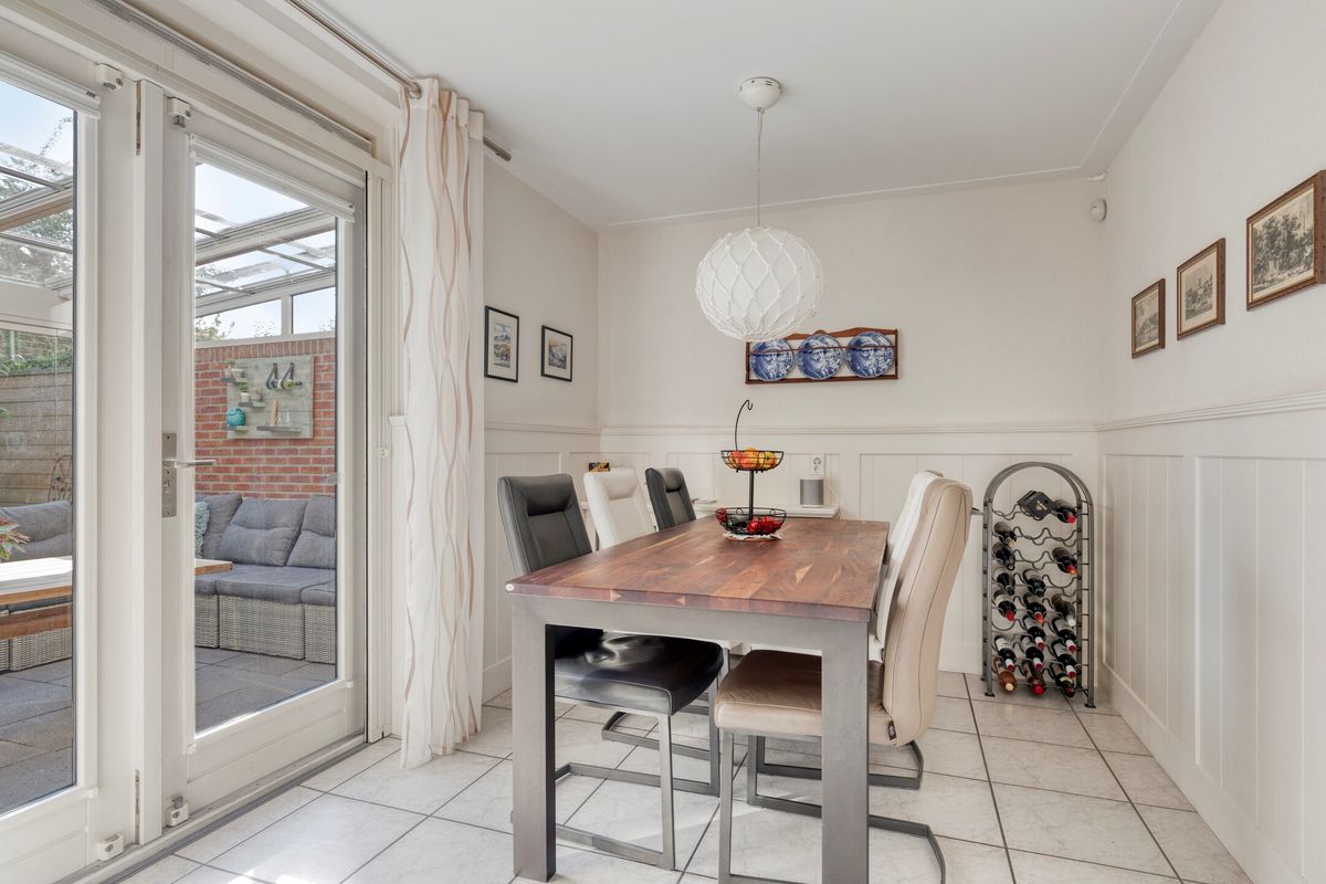 Kom binnen in een huis dat meteen voelt als thuis. In de ruime woonkamer met vloerverwarming blijft het ’s winters behaaglijk warm; in de zomer zet je de dubbele tuindeuren open naar het grote overkapte terras (serre). Wordt het je iets te heet, dan zorgt de geïntegreerde zonwering van de aluminium overkapping voor verkoeling.