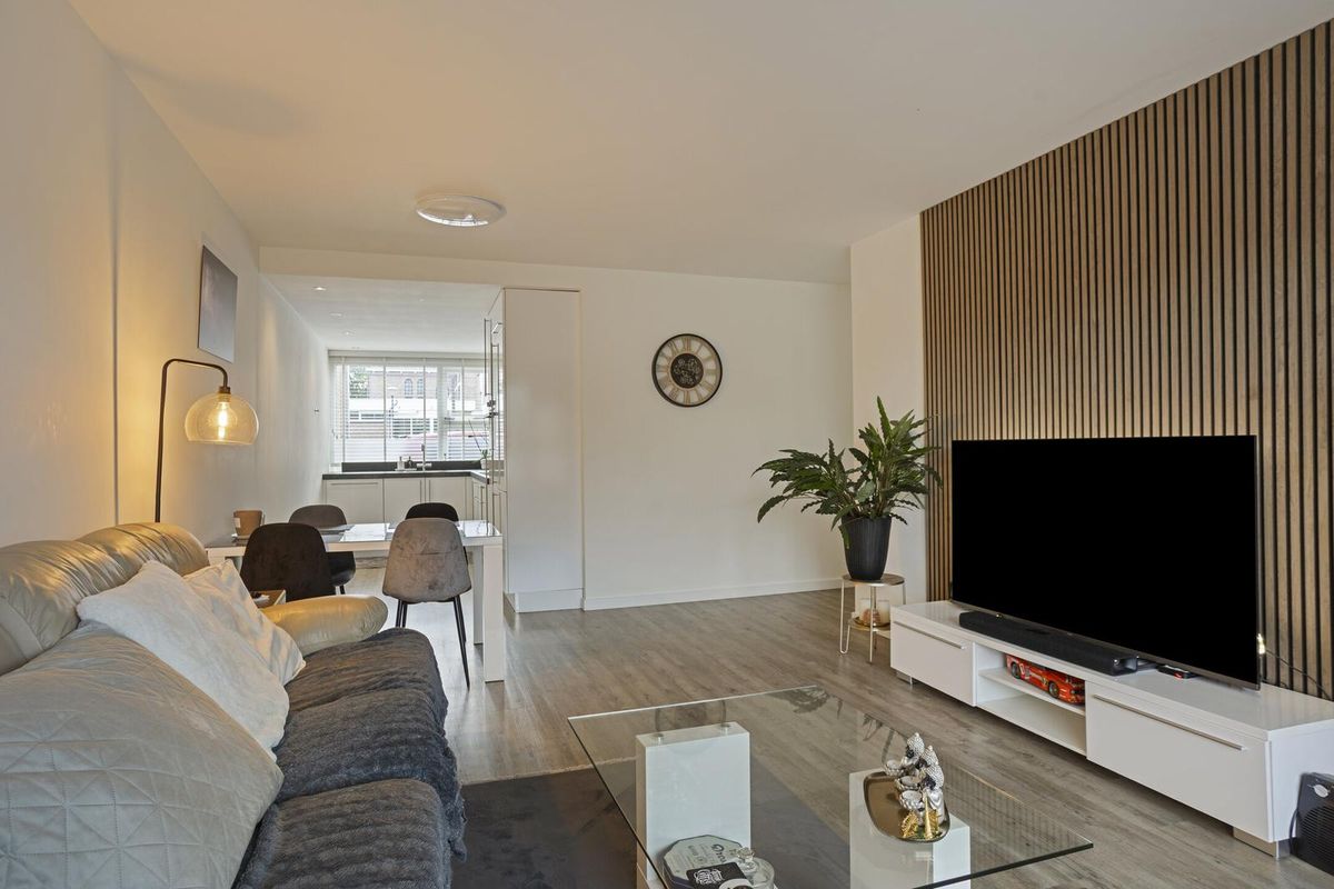 Bij binnenkomst kom je in de centrale hal, die toegang geeft tot vrijwel alle vertrekken in de woning. Aan de voorzijde bevindt zich de woonkamer, die dankzij grote raampartijen geniet van veel lichtinval. Er is voldoende ruimte voor een comfortabele zithoek én een gezellige eethoek. Vanuit de woonkamer stap je direct de tuin in – ideaal voor de zomermaanden!