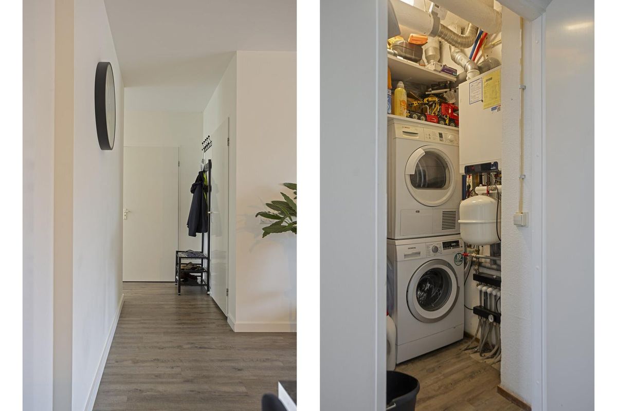 Upon entering, you are welcomed into a central hallway that provides access to all rooms. At the front of the apartment is the bright and airy living room, with large windows that allow for plenty of natural light. There is enough space for both a cozy sitting area and a dining table. From the living room, you have direct access to the garden — perfect for enjoying the warmer months.