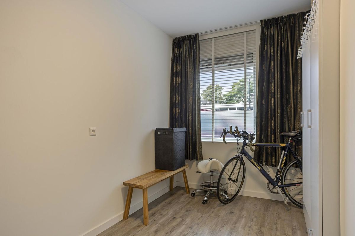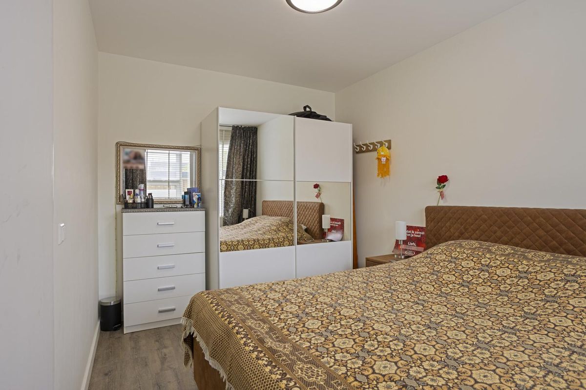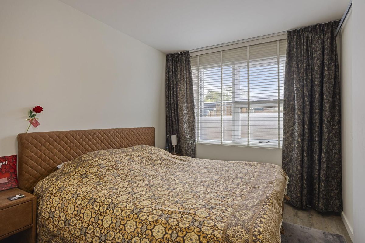 Aan de achterzijde van de woning bevinden zich de twee slaapkamers, beide van een prettig formaat. De hoofdslaapkamer ligt direct aan de tuinzijde en is heerlijk rustig gelegen. De tweede slaapkamer kan dienen als kinderkamer, werkkamer of logeerkamer.