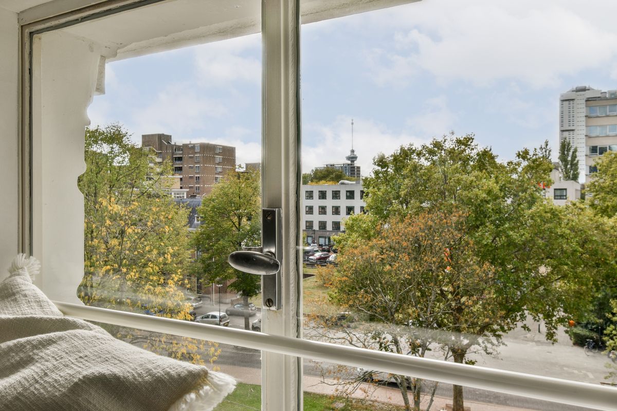 This monumental property (protected cityscape) from 1867 has a rich history: first built as a townhouse, later repurposed as a (bank) office in the 1970s, and since the early 2000s converted back into high-quality residential apartments. The well-maintained building consists of six studio apartments, and right now the most charming one of them all is up for sale. At the top floor, this 33 m² apartment offers everything you need in a home: a fully equipped kitchen with built-in appliances (including a brand-new washer-dryer), a bathroom with shower, and a view of the Euromast.