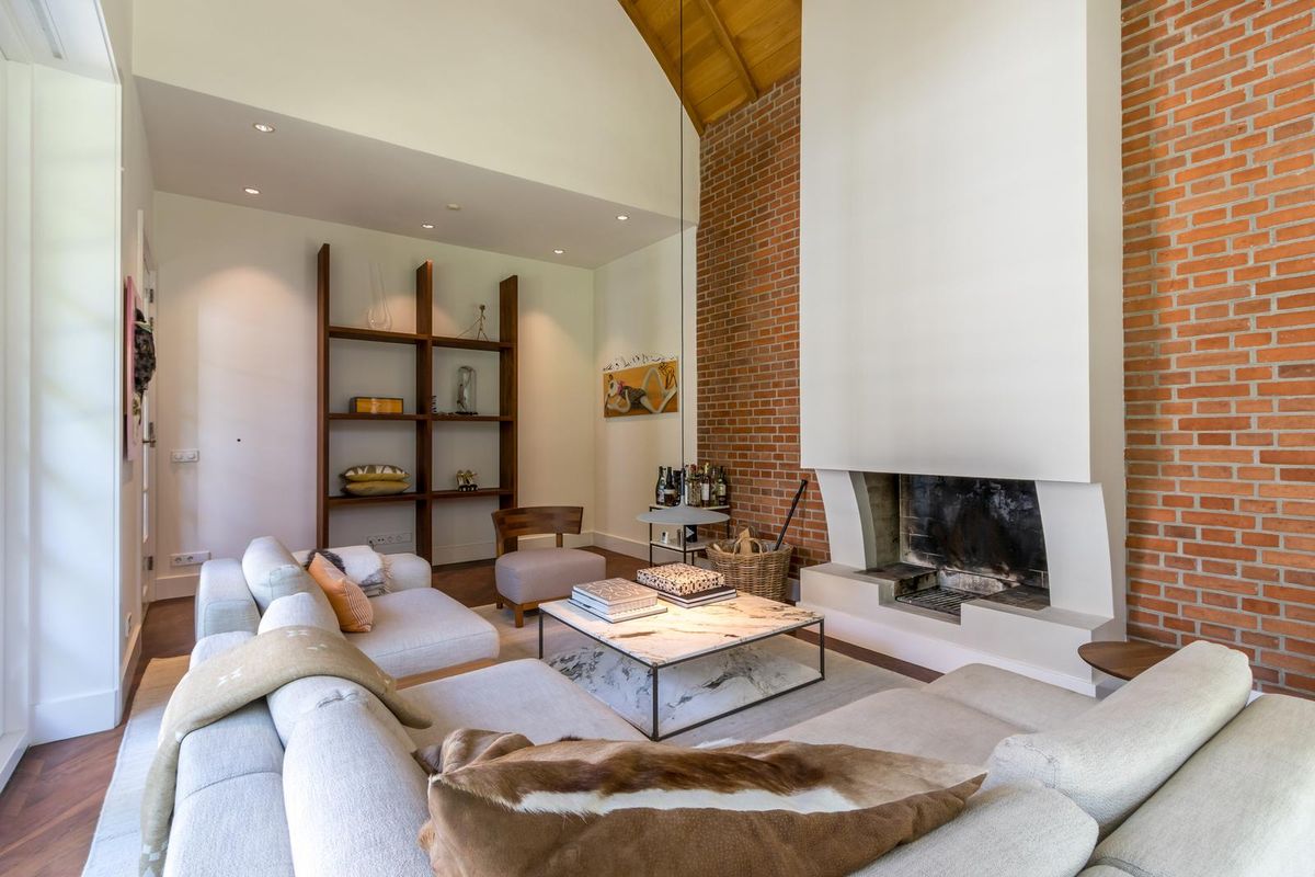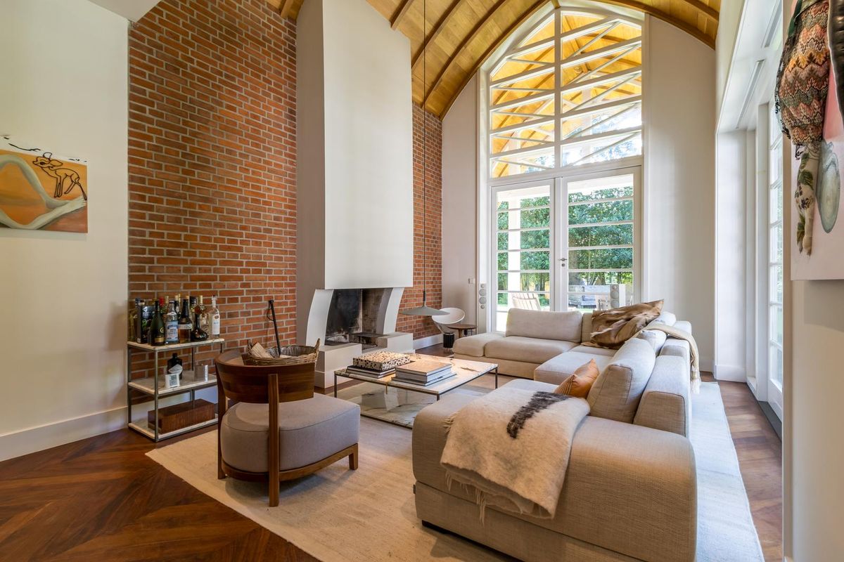 Direct aan deze leefkeuken is de zeer smaakvolle zitkamer gelegen, welke ook voorzien is van een “echte” openhaard. In de zitkamer vallen het prachtige hoge plafond en de sfeervolle openhaard direct op, deze zitkamer is een van de gezelligste die we ooit hebben gezien en helemaal in de stijl gebouwd.