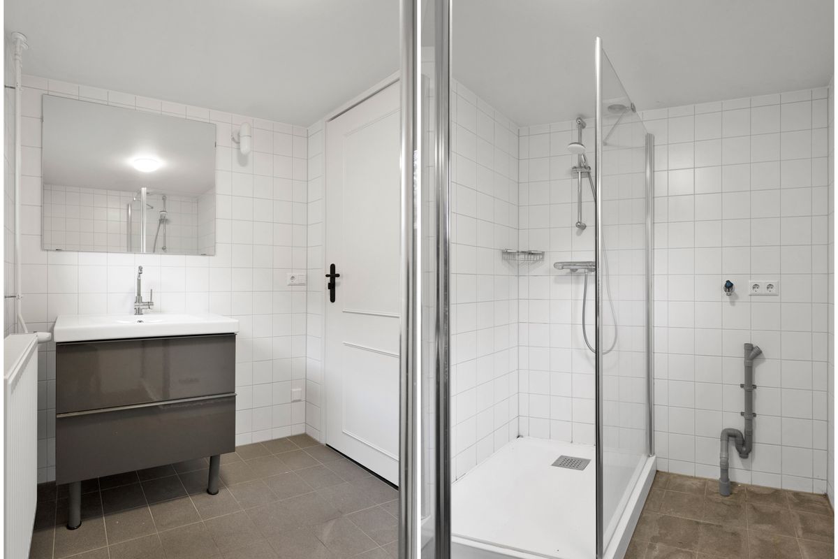 Via de hal is ook het toilet, de badkamer met douche, wastafelmeubel en aansluiting voor de wasmachine, en de slaapkamer toegankelijk.