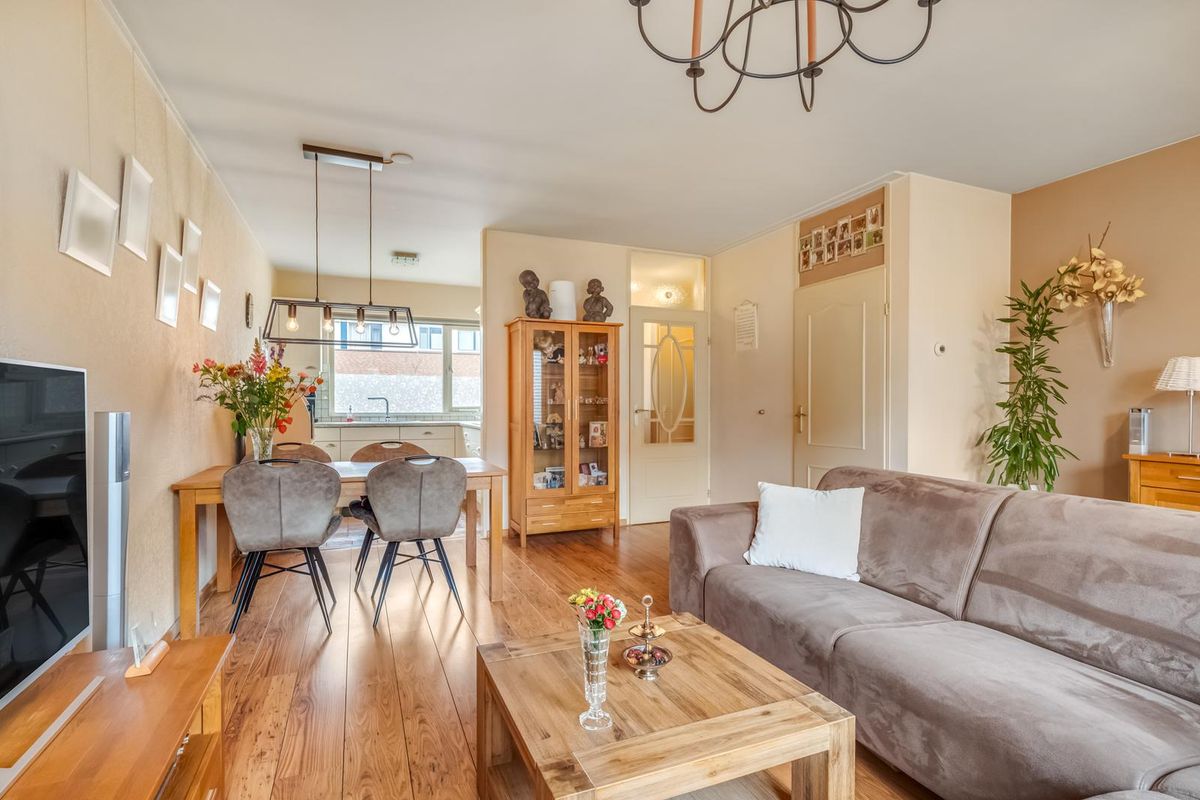 Stap binnen in de lichte woonkamer, waar grote ramen zorgen voor een fijne lichtinval. De open verbinding met de keuken maakt deze ruimte perfect voor het gezinsleven. De keuken is ruim opgezet met veel werk- en opbergruimte. Je kijkt tijdens het koken uit op de straat: zo zie je iedereen tijdens het koken thuiskomen, na het werk of uit de speeltuin.